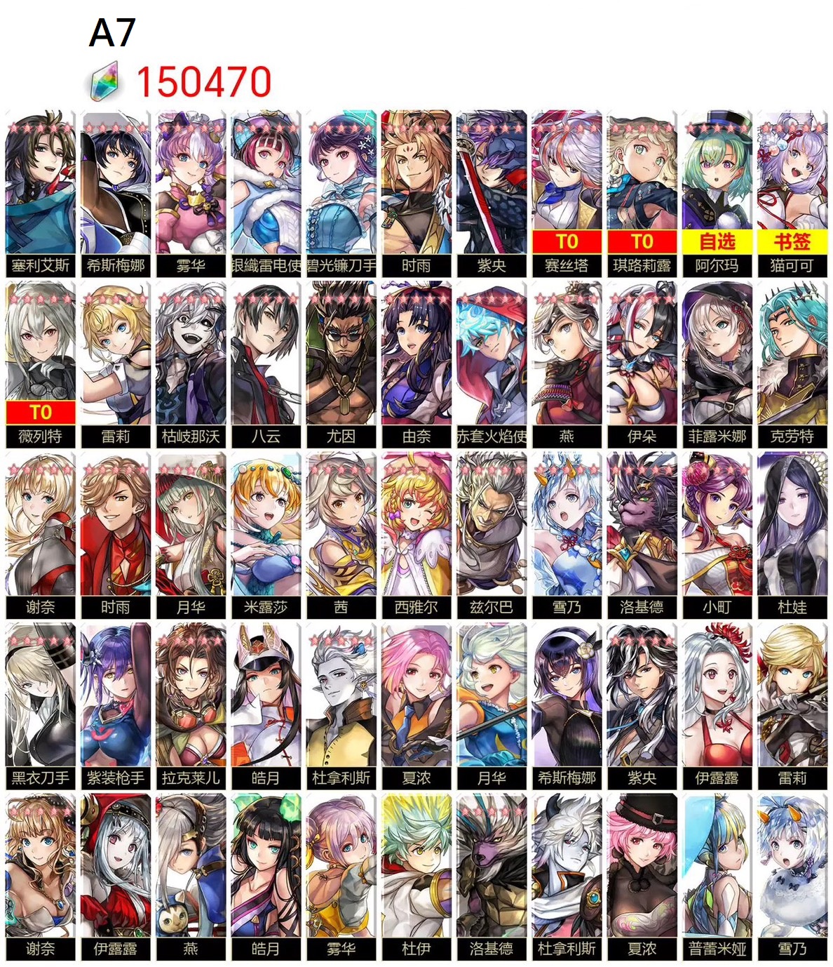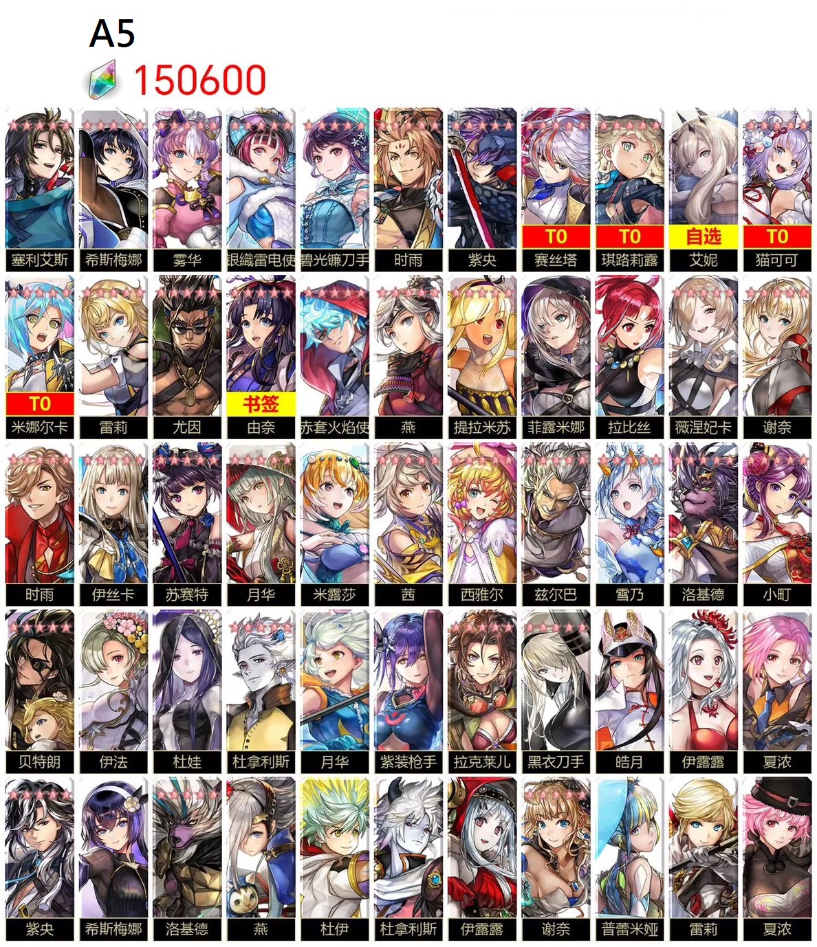 | A8 | AS賽絲塔+仙華+艾妮+艾爾席兒+琪路莉露+15萬鑽 | 3000 |