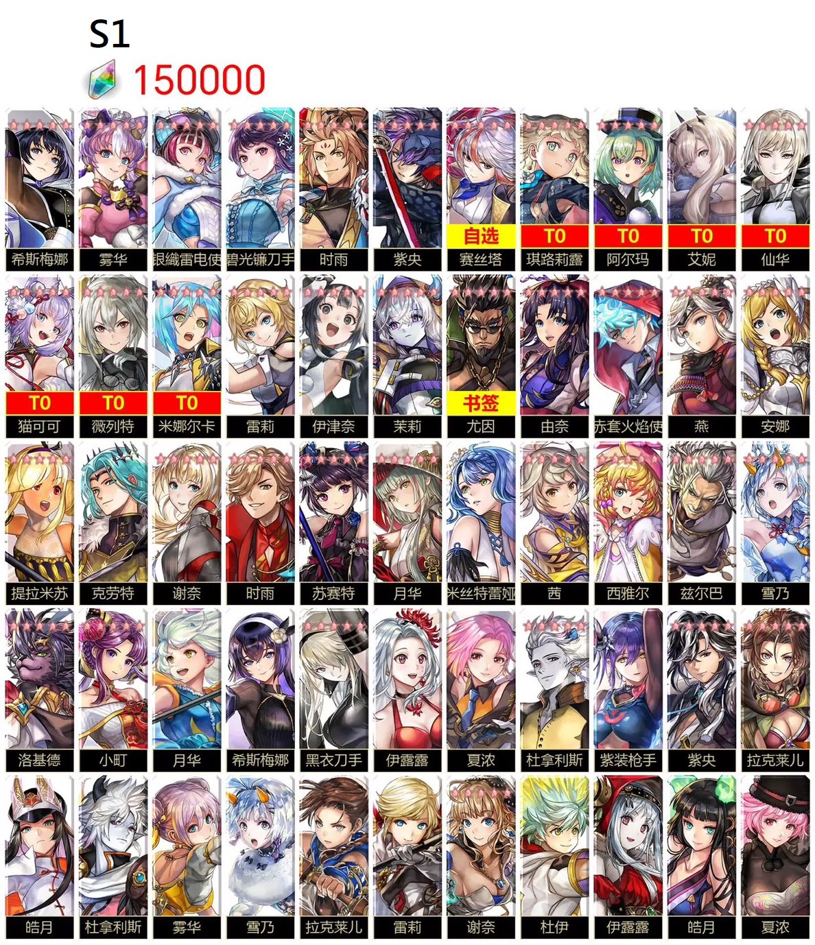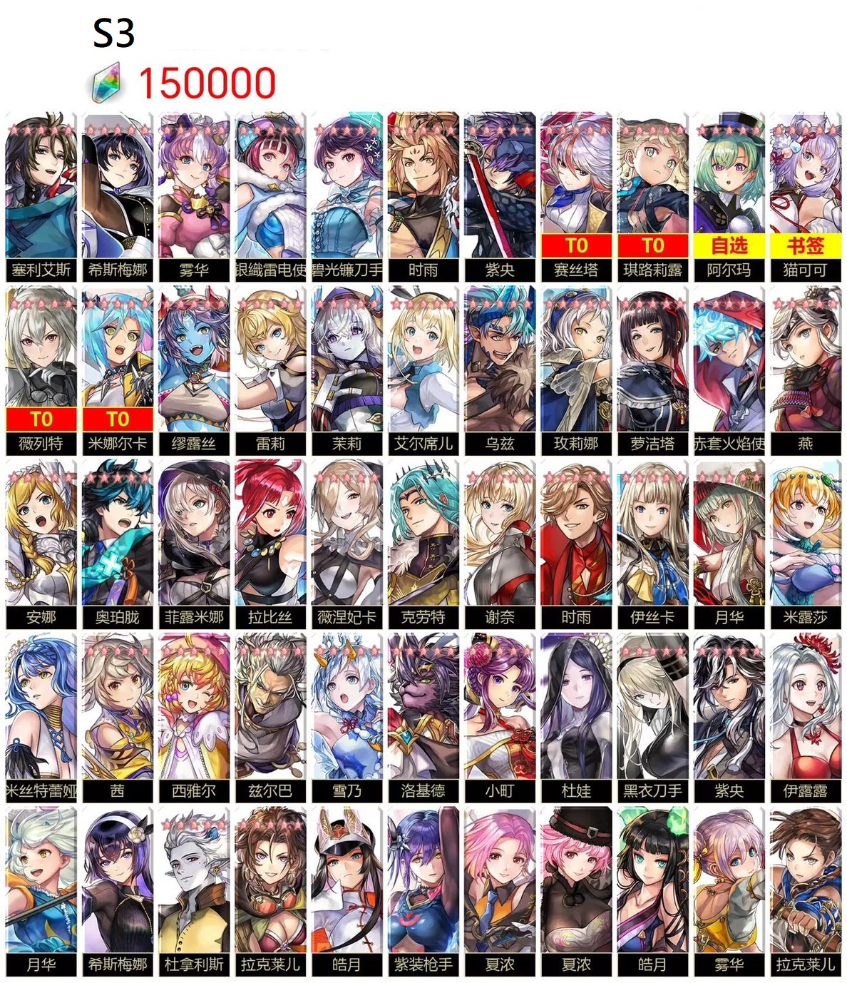| S2 | AS賽絲塔+仙華+米娜爾卡+艾妮+琪路莉露+15萬鑽 | 5000 |
