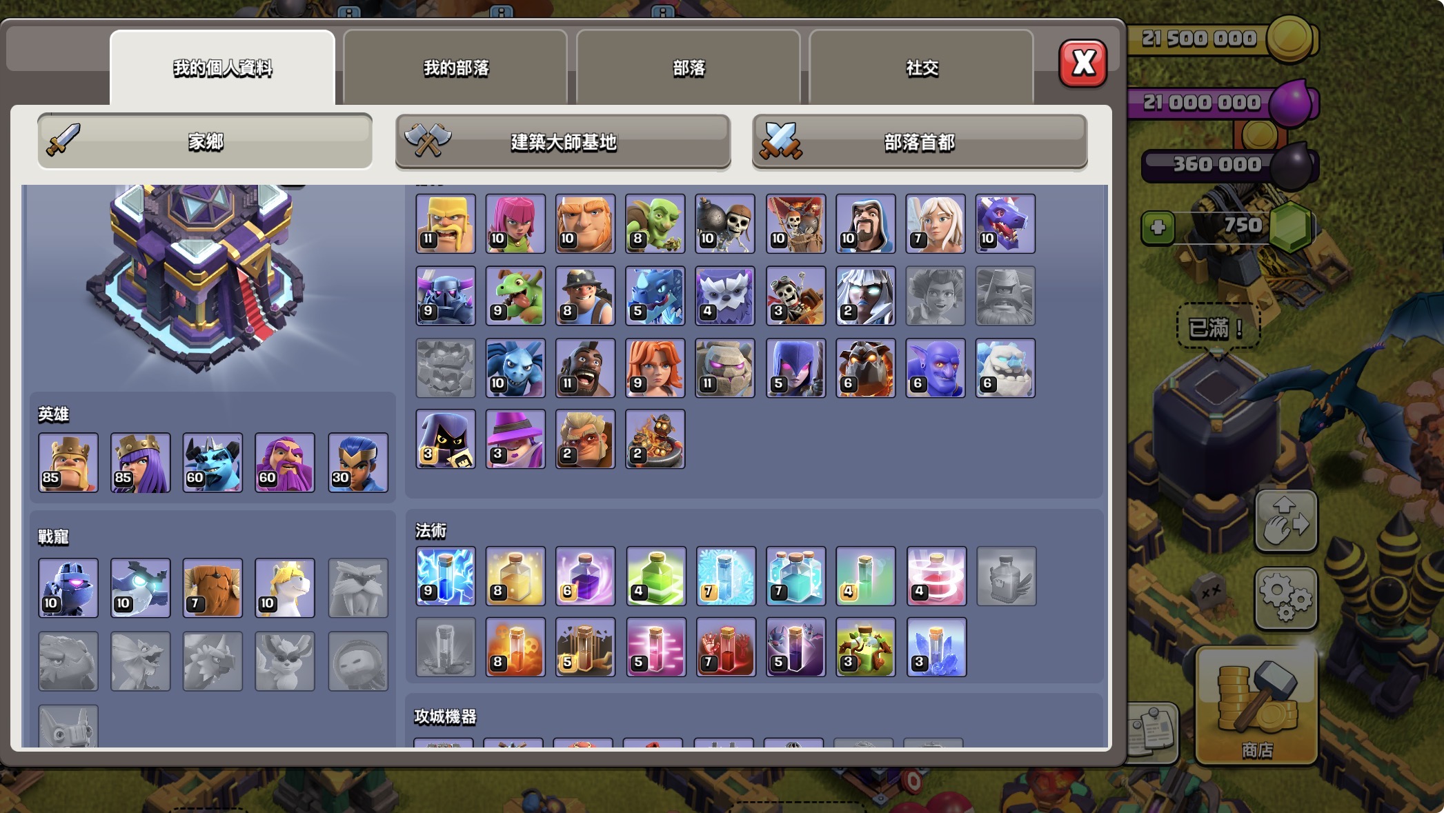 【184等】 15本初期號王、防禦、科技等級均有跟上有場景、四王皆有皮膚!