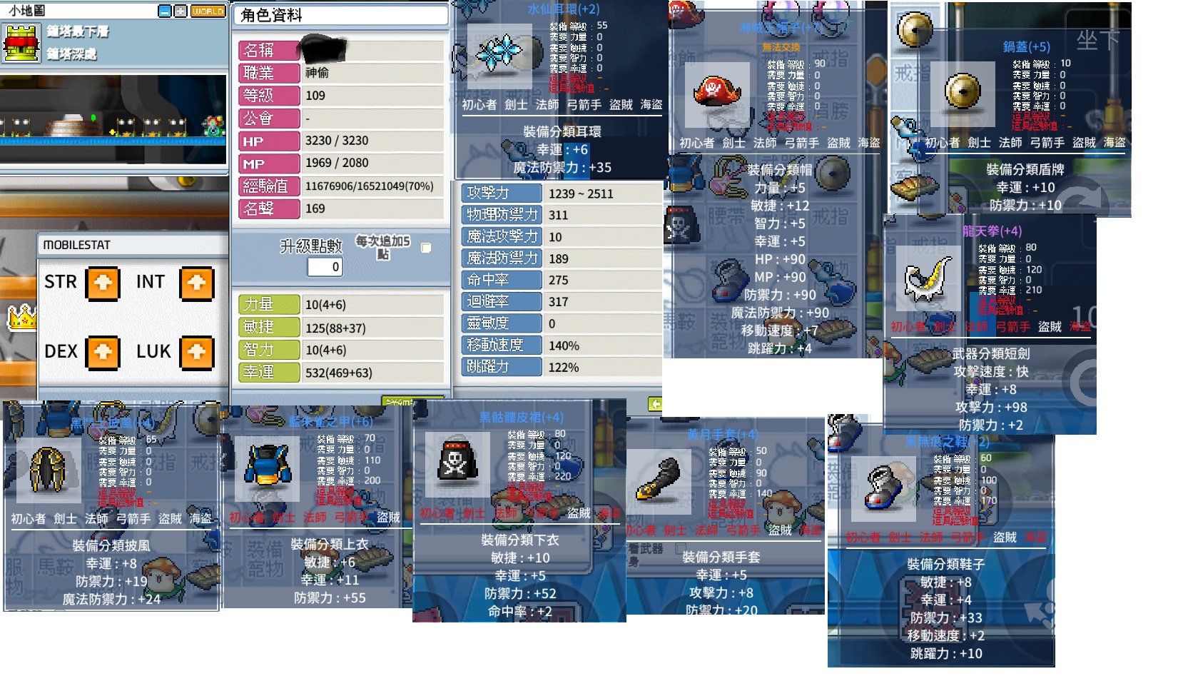 帳號 【110等、神偷_暗影神偷】 110刀賊 乾表2511 背包和寵物技能全開 有自由造型卷 空裝賣2600