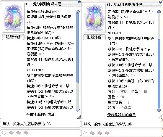 道具 +11變幻莫測魔術斗篷1S(頂附魔~魔法破防10%)暗詠魅影/自詠超初魅影追蹤者