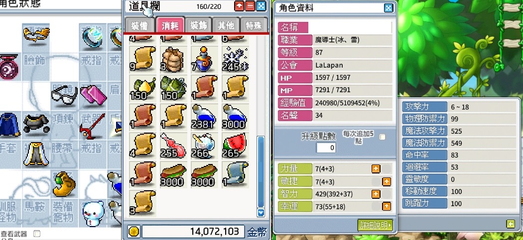 帳號 【87等、魔導士(冰雷)_大魔導士】 冰雷法師 525ap