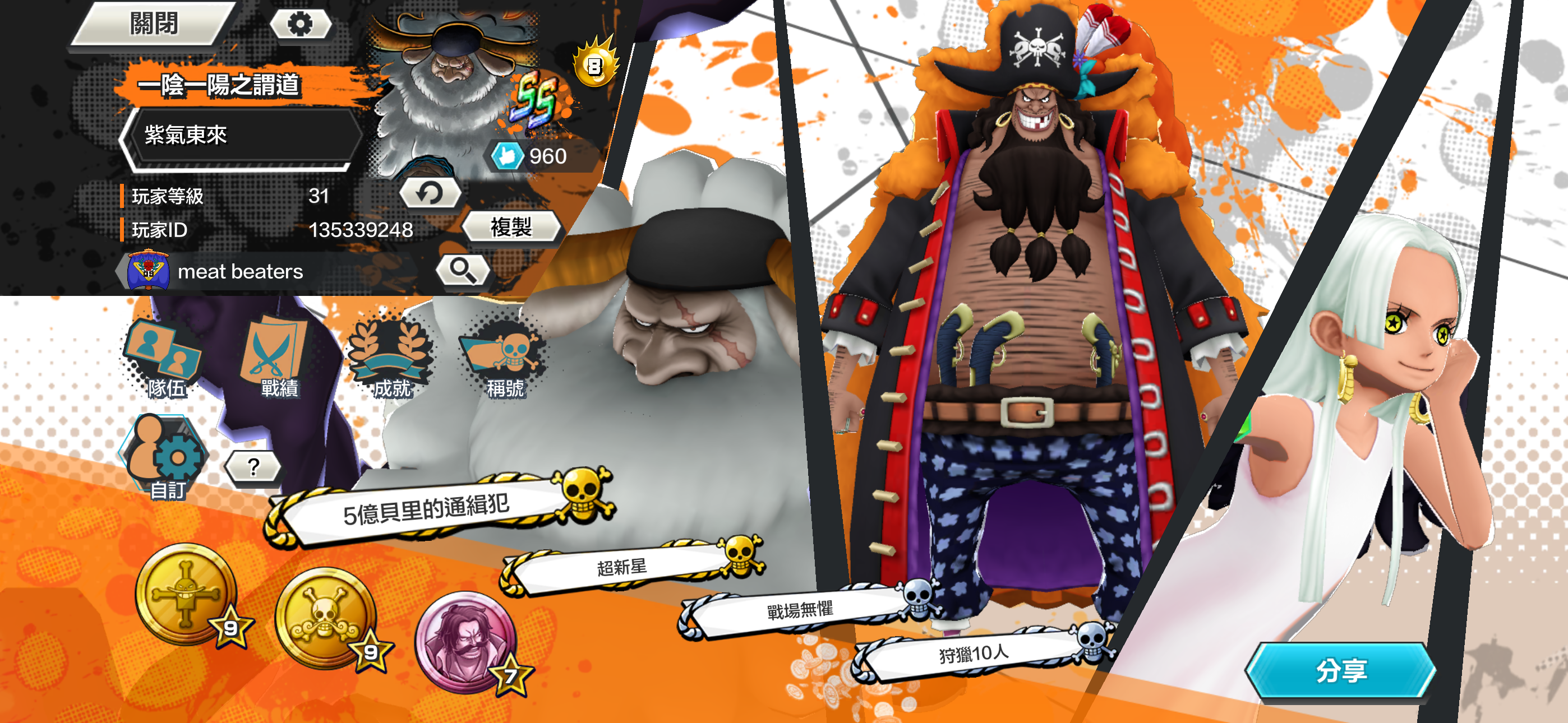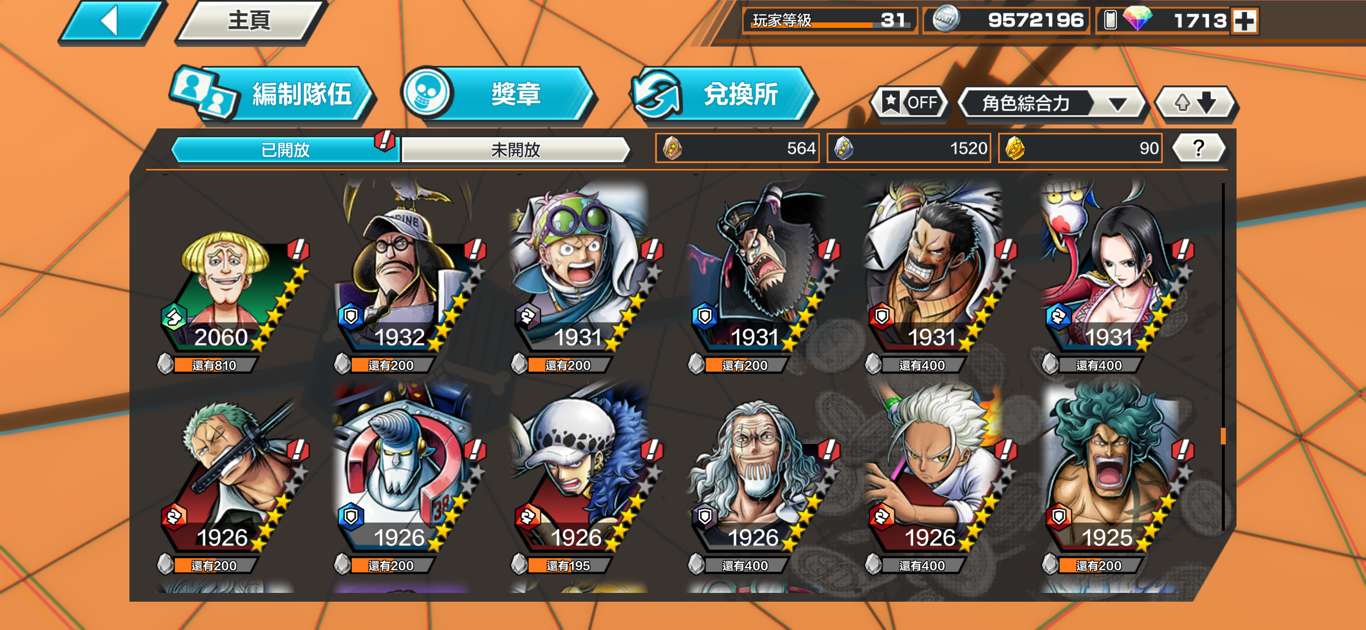 帳號內含大量資源,很多傳奇角色大雄波尼都有,想看看有沒有想要的傳奇可以私訊,都是登入打領資源,沒什麼花資源,可以自由使用,鑽石持續更新2300+以上,單人很多都沒打,SS輕鬆虐,還有很多獎章萬用,都配好了,買回去直接完頂配黑鬍子稱霸,有興趣歡迎私訊!