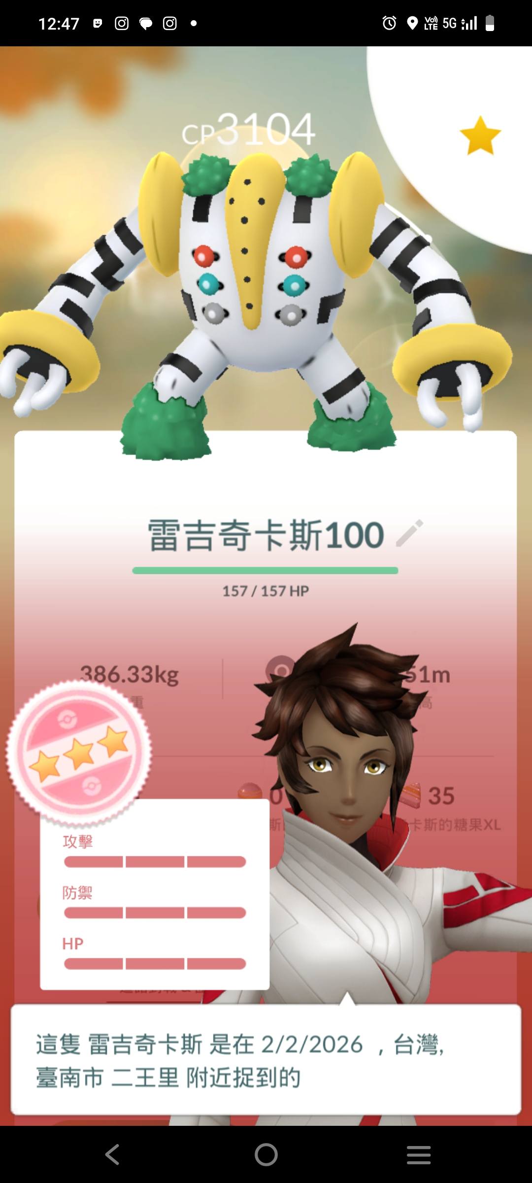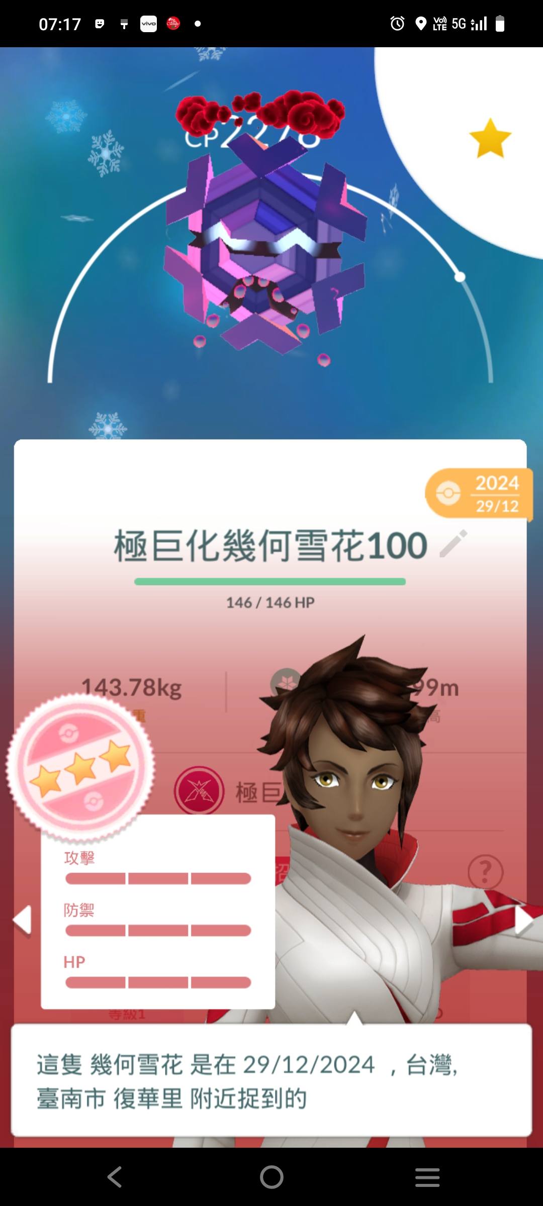 極巨化幾何雪花100趴x1 極巨化戰旋蠑螈100趴x1 雷吉奇卡斯100趴x1