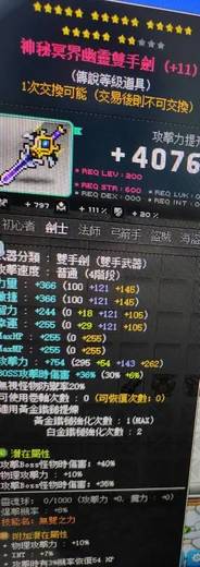 武器附加用潛: +11%物攻(雙S水平 上限強度)(1.5WT)