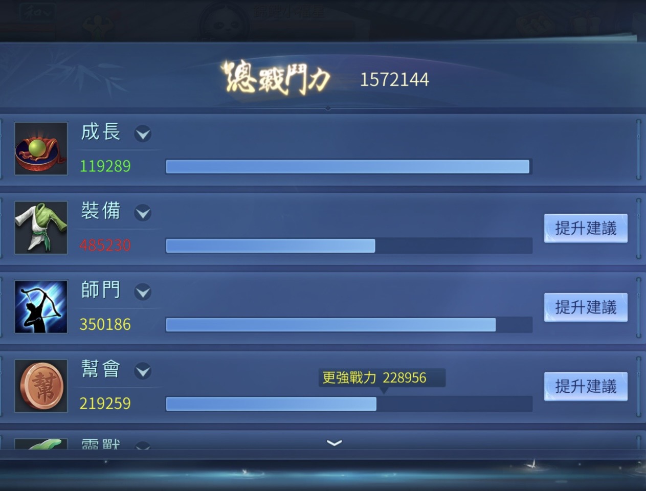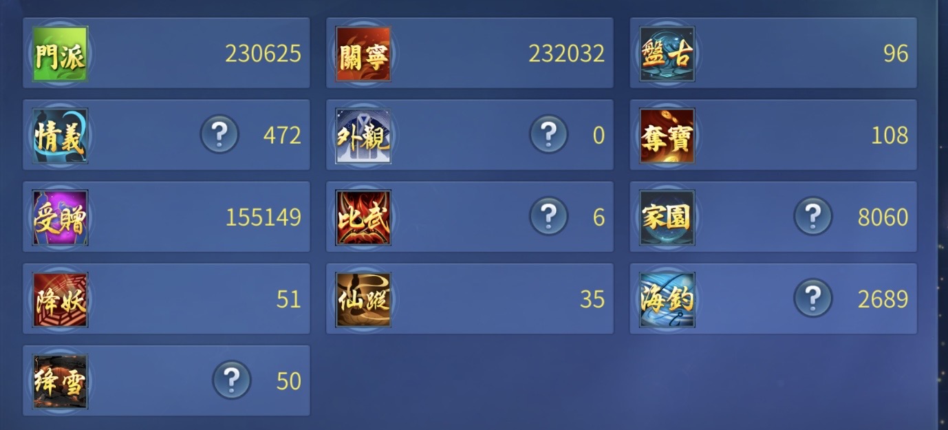 New1偃師,三級仙家,未加家園加成前的戰力157萬,門派穩定前十,前緣充足,很多裝備已上強化20,月卡還3千多天。