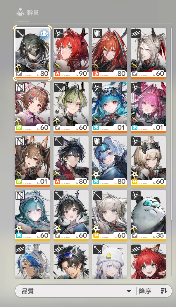 | 人物 | 等級 | 專武 | 備註 |