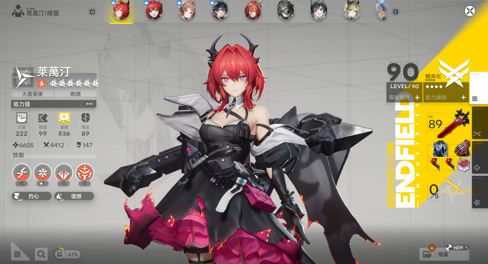| 伊馮 | 90 | 藝術暴君 | 完美符合基質 知識 爆擊 切骨 (未練滿等) |