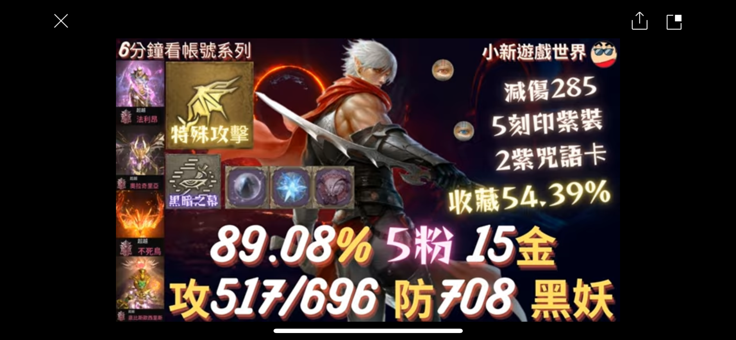 帳號 【黑暗妖精、89等、肯恩】 89等高收藏高強度黑妖