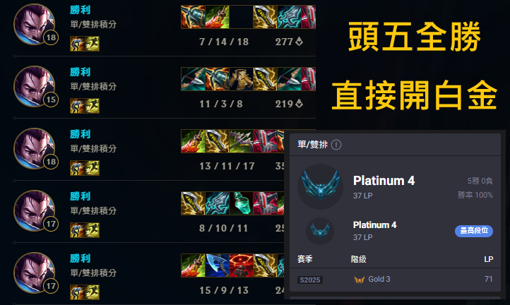 帳號 【單雙白金】 闇夜使者犽宿/前五把全勝/開白金 /高隱分/資料可改