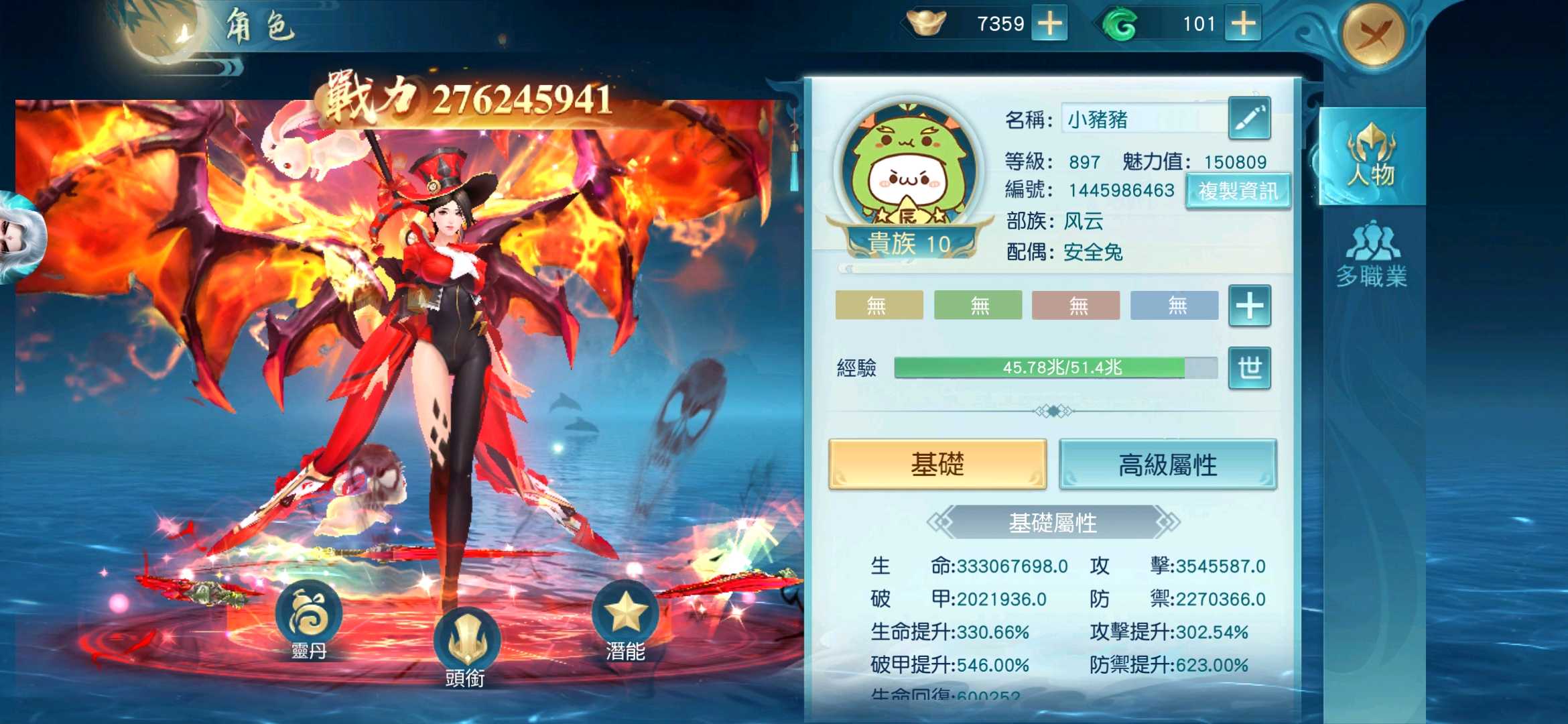帳號,等級897,v10,有開通神尊和無上神尊,青玄如意