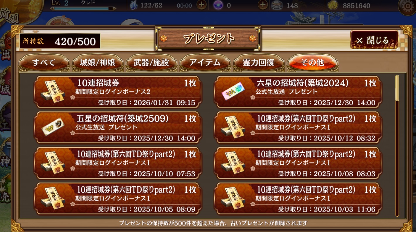10連招城券×22(身上還有30張,合計52張)