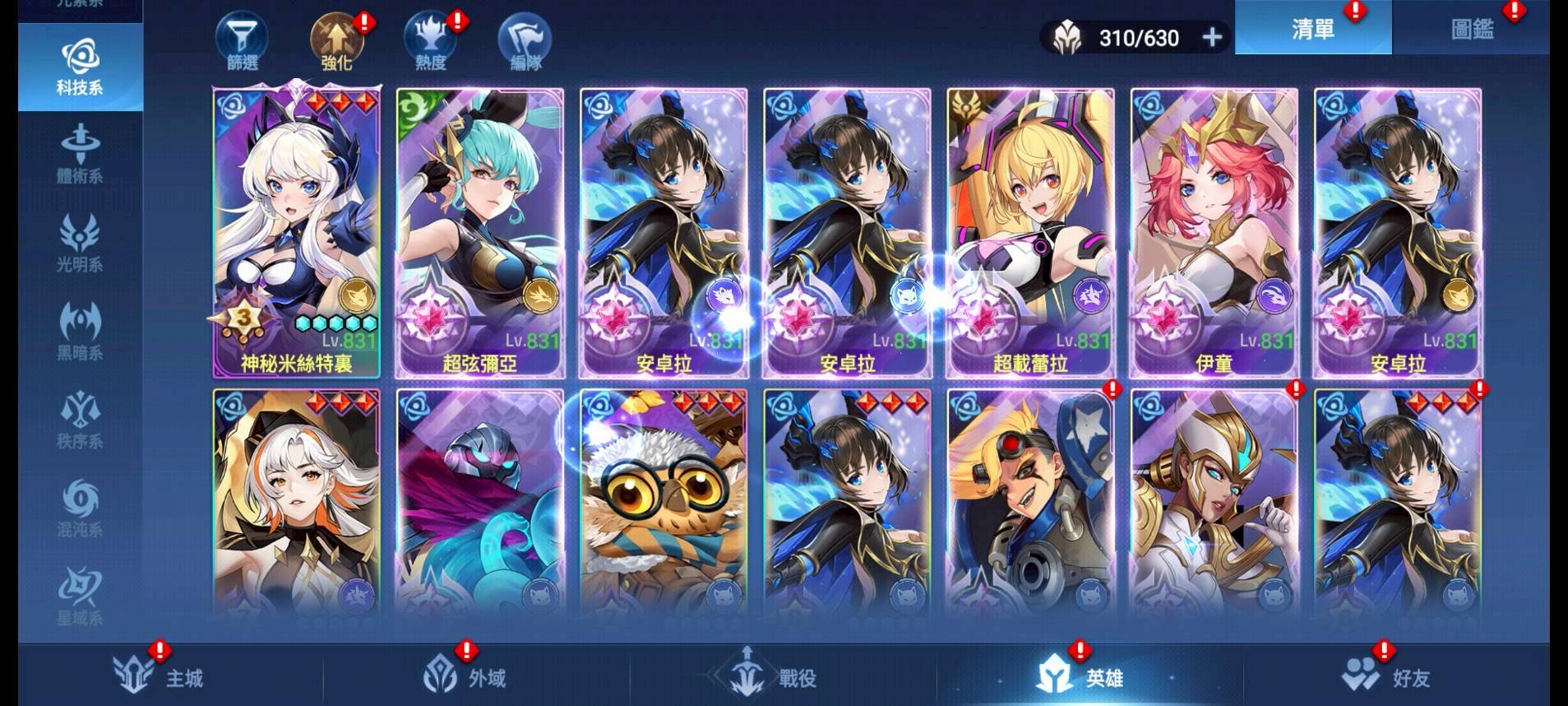 6支高覺醒安卓拉、多支實用UR英雄及秩序系、混沌系、星域系高覺醒英雄