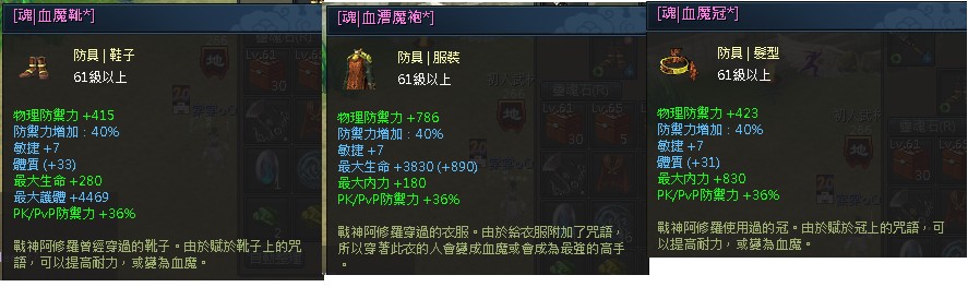 【紫色 / 頭 衣 鞋 / 防禦套 】61防具3件套