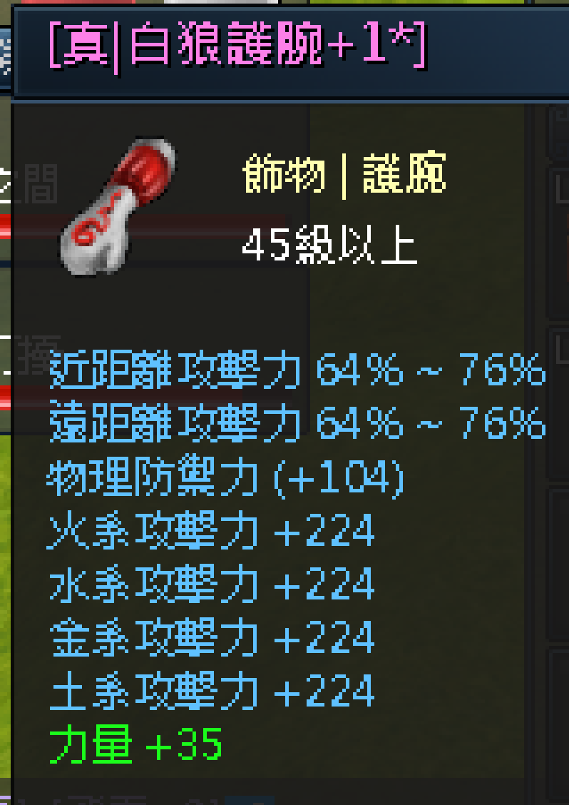 道具 戰魂不滅 - 45真1白狼護腕 +35力
