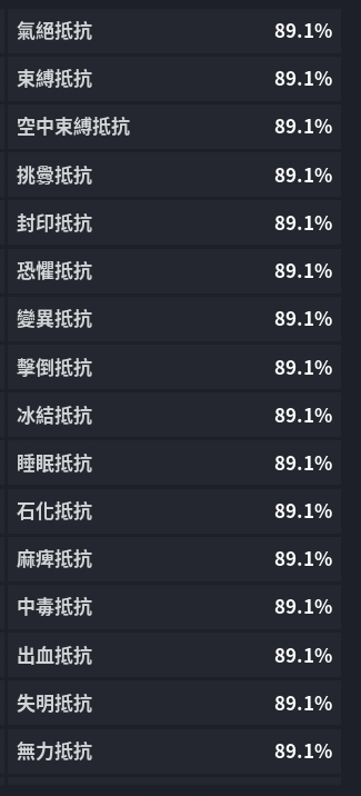 裝備詞條洗好 抗性異常狀態