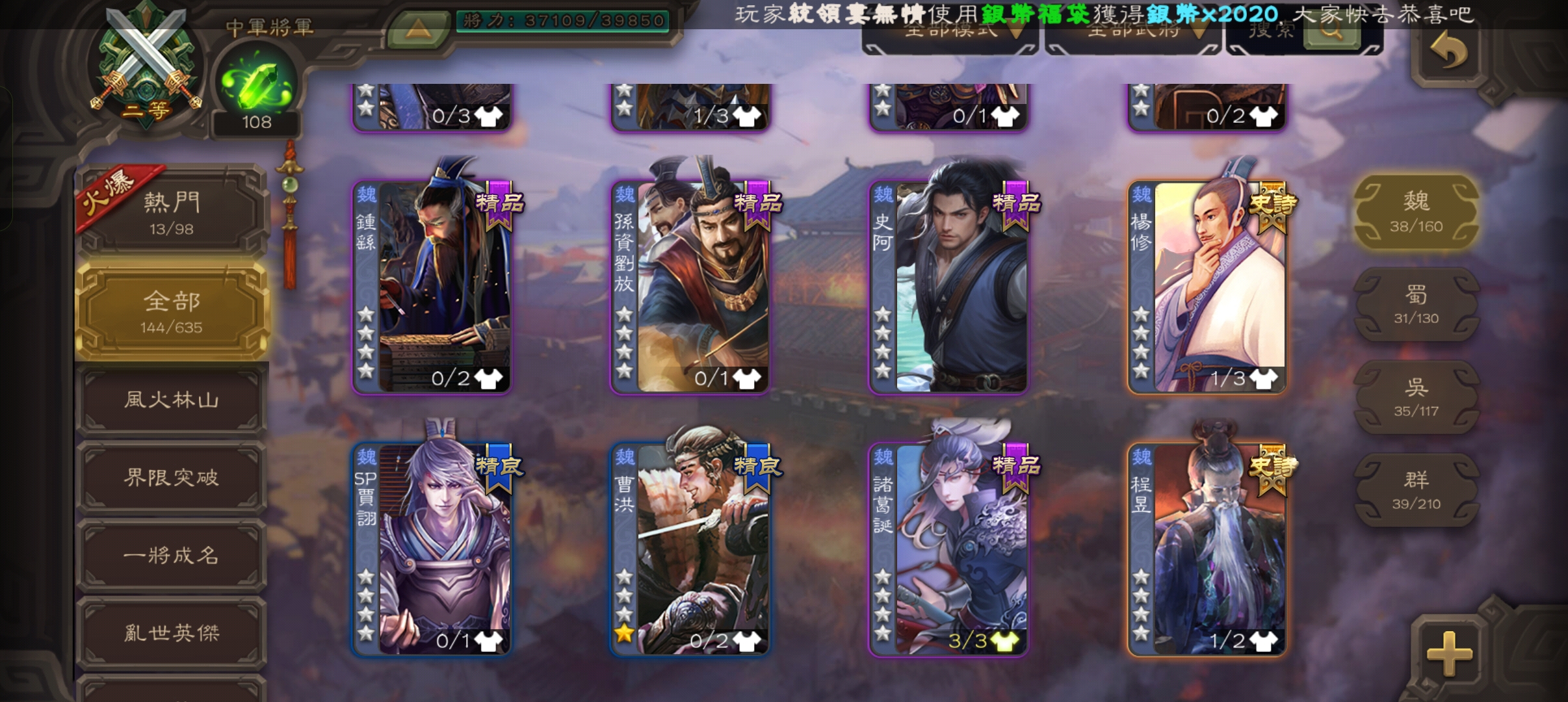 【168等】三等大將軍,楊彪,曹髦,孫寒華,史詩繁多