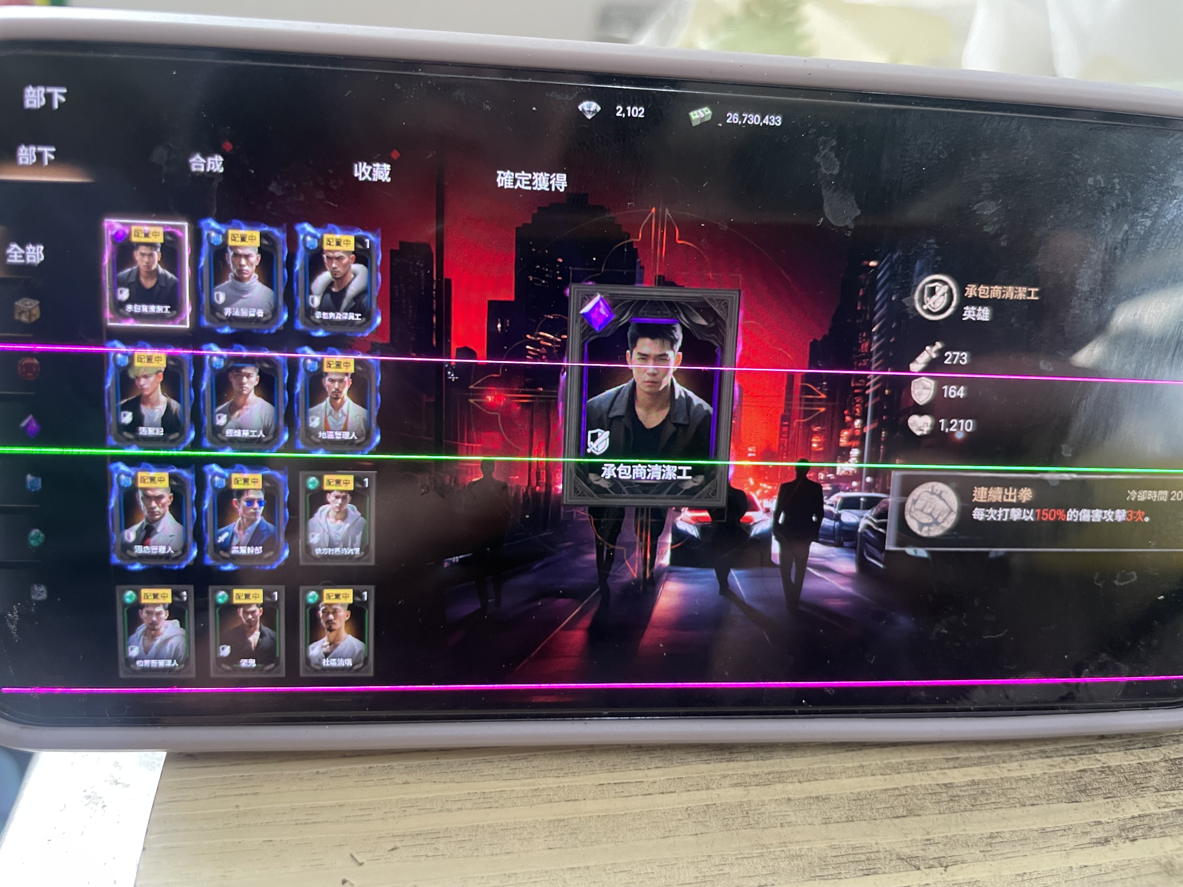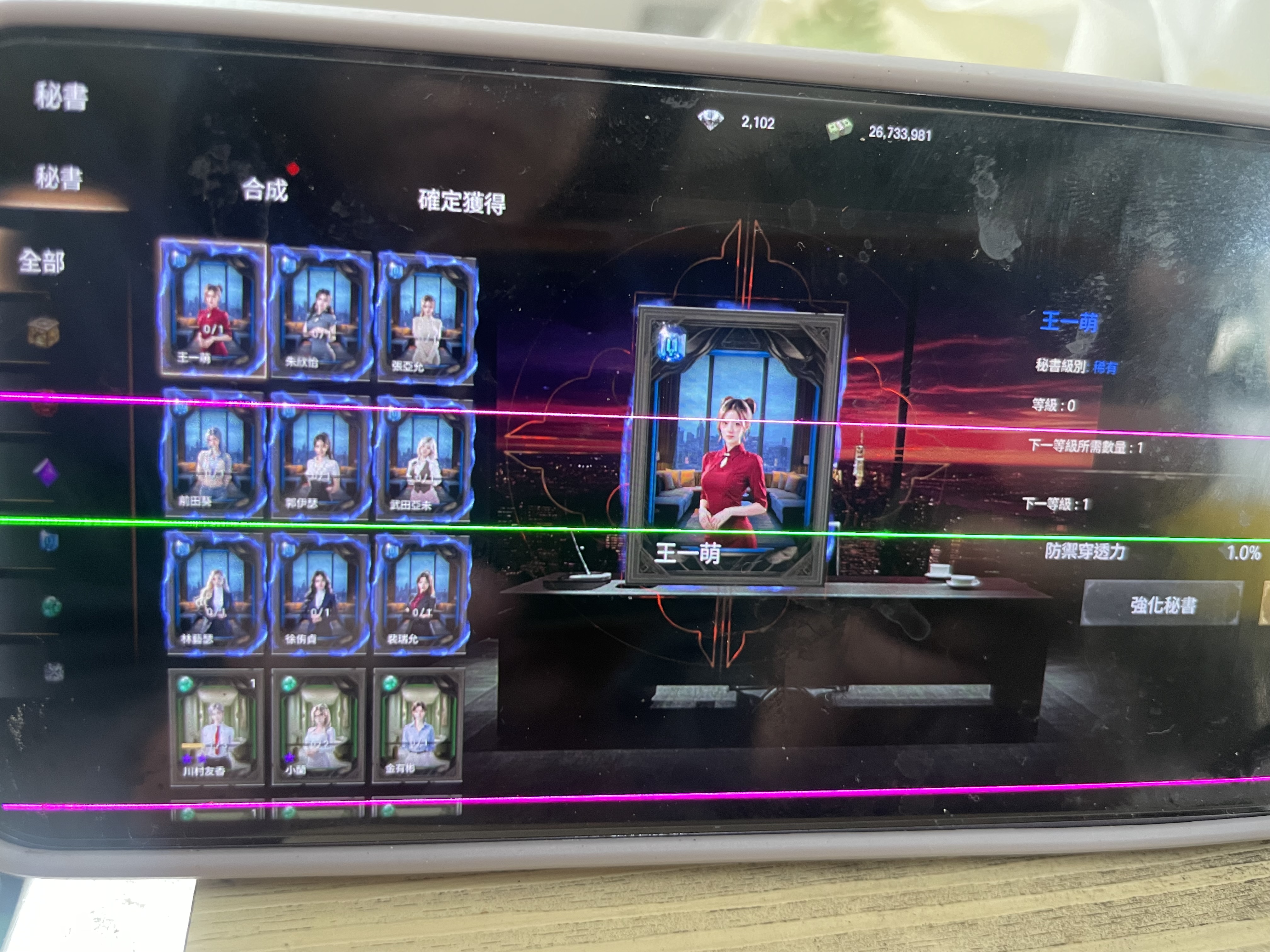 比日本壓縮機更稀有的紅變(等同天堂紫變)影堂,戰力11萬天天成長中,1紅變、1紫部下、3紫秘書、1紫技,圖鑑917/2795、141/936持續累積中。
