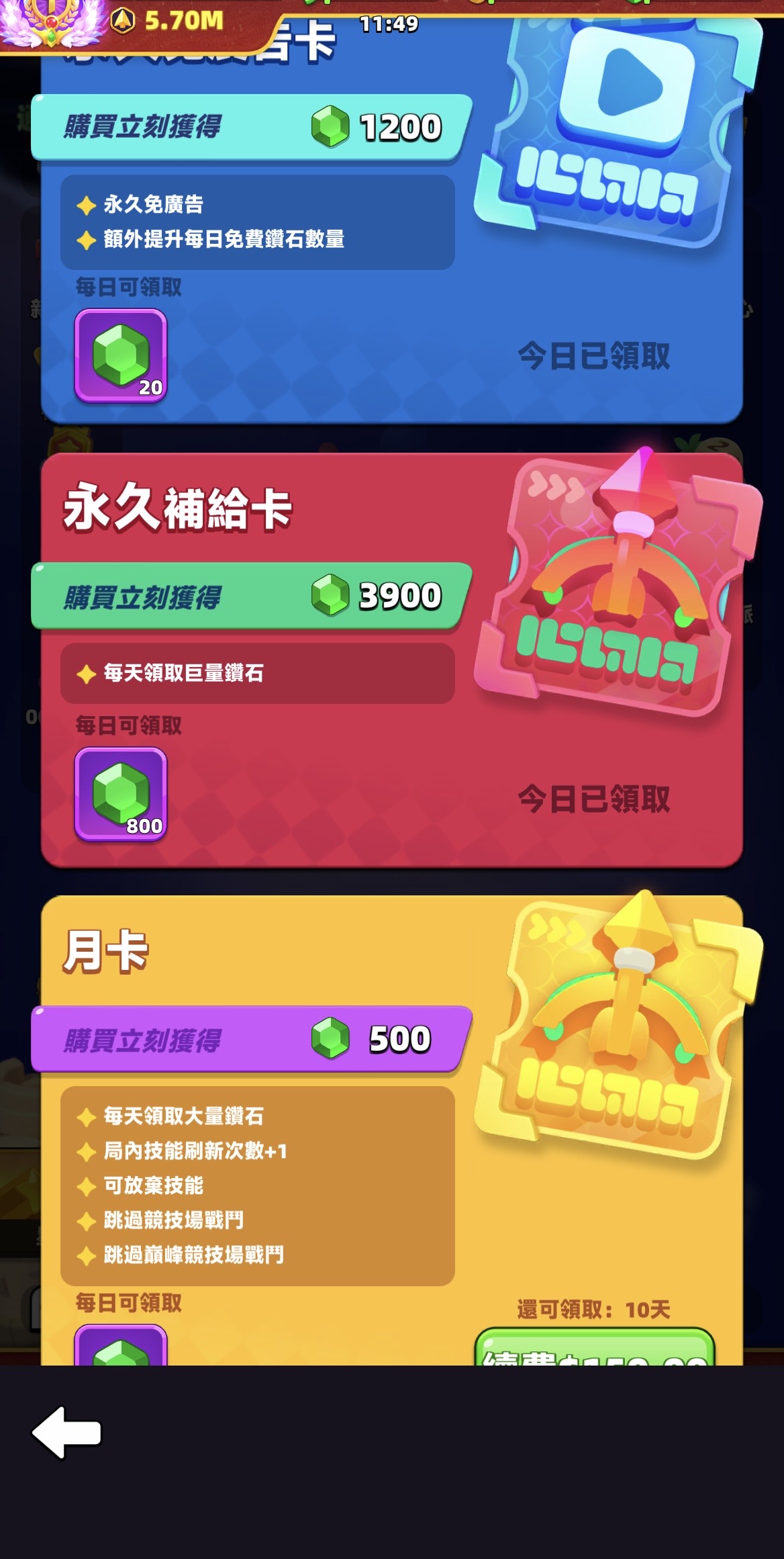 其餘特權也固定每個月都有持續購買