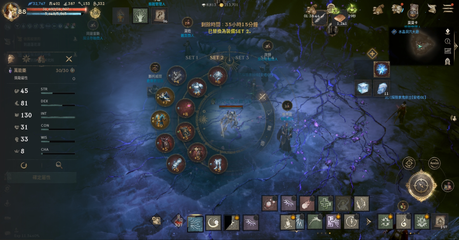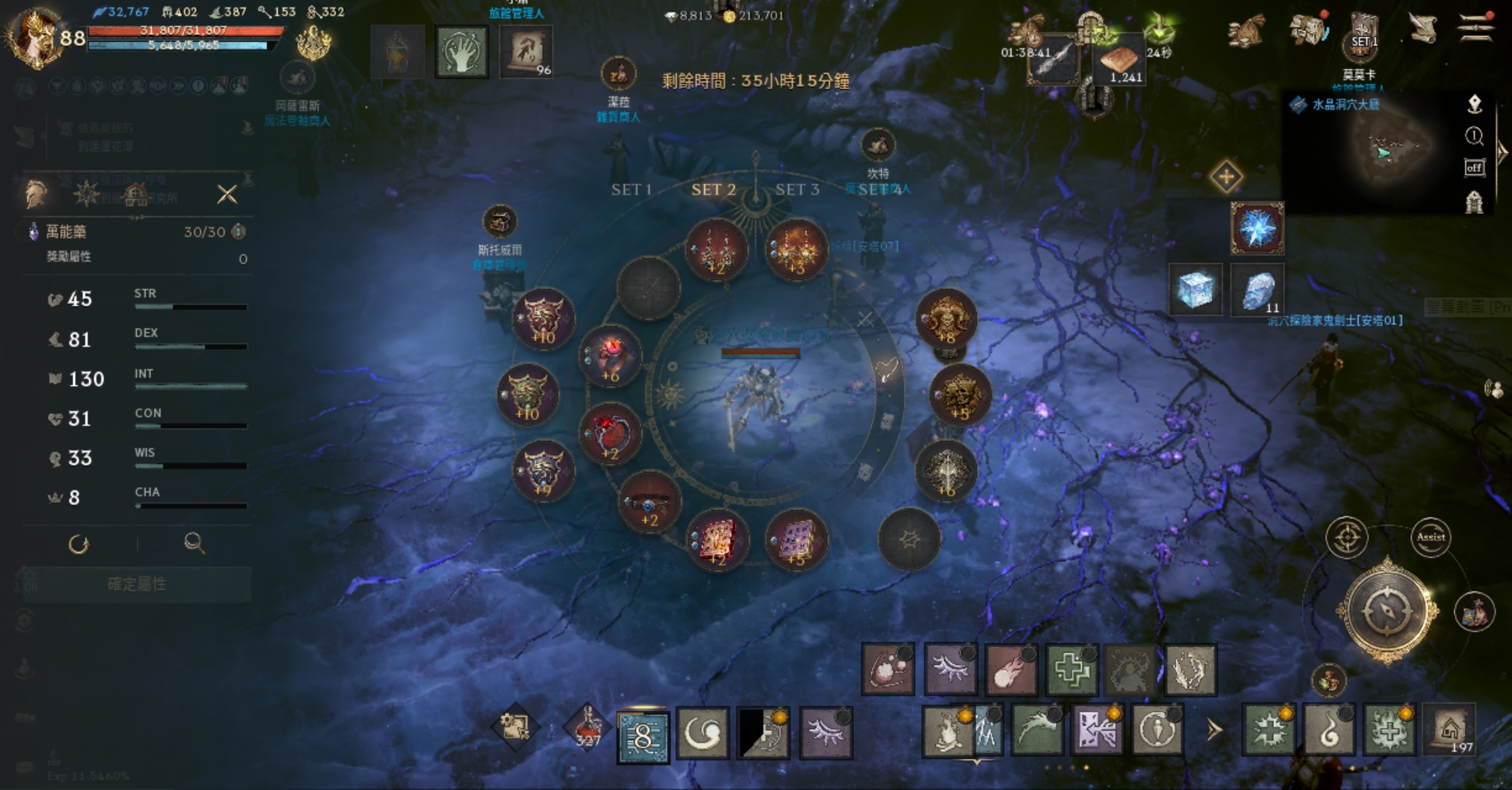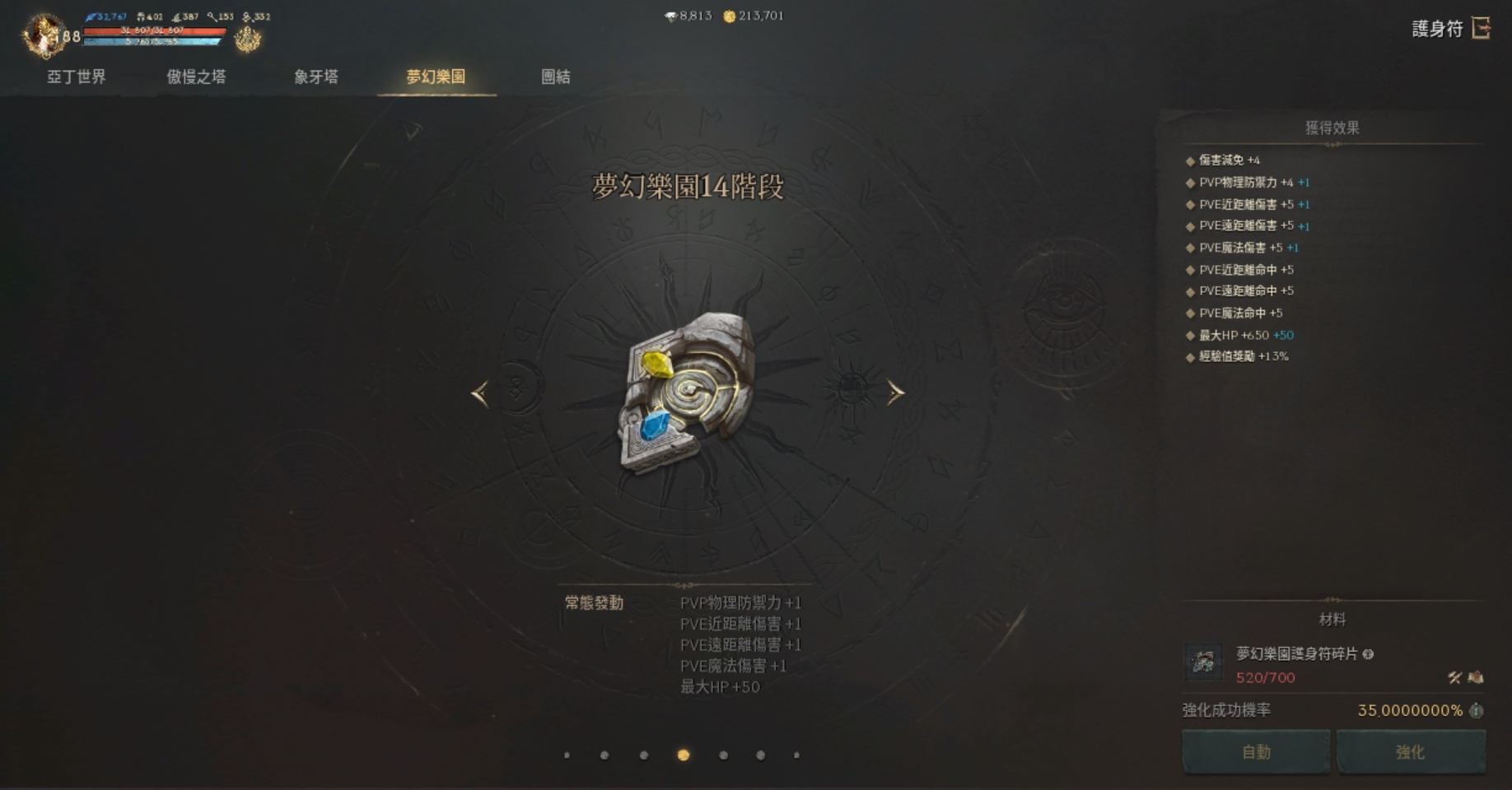 【素質】:血量32617、魔傷227/魔命385/魔增152、防/魔防409/383、PVE防524。