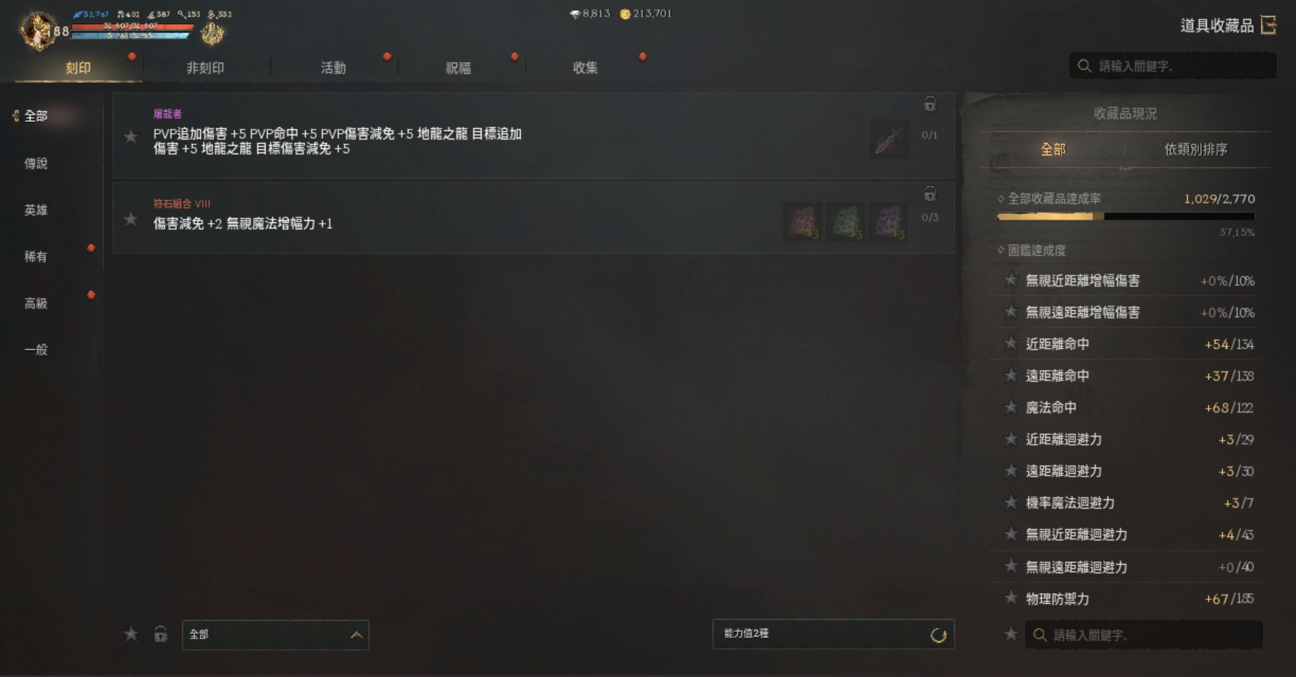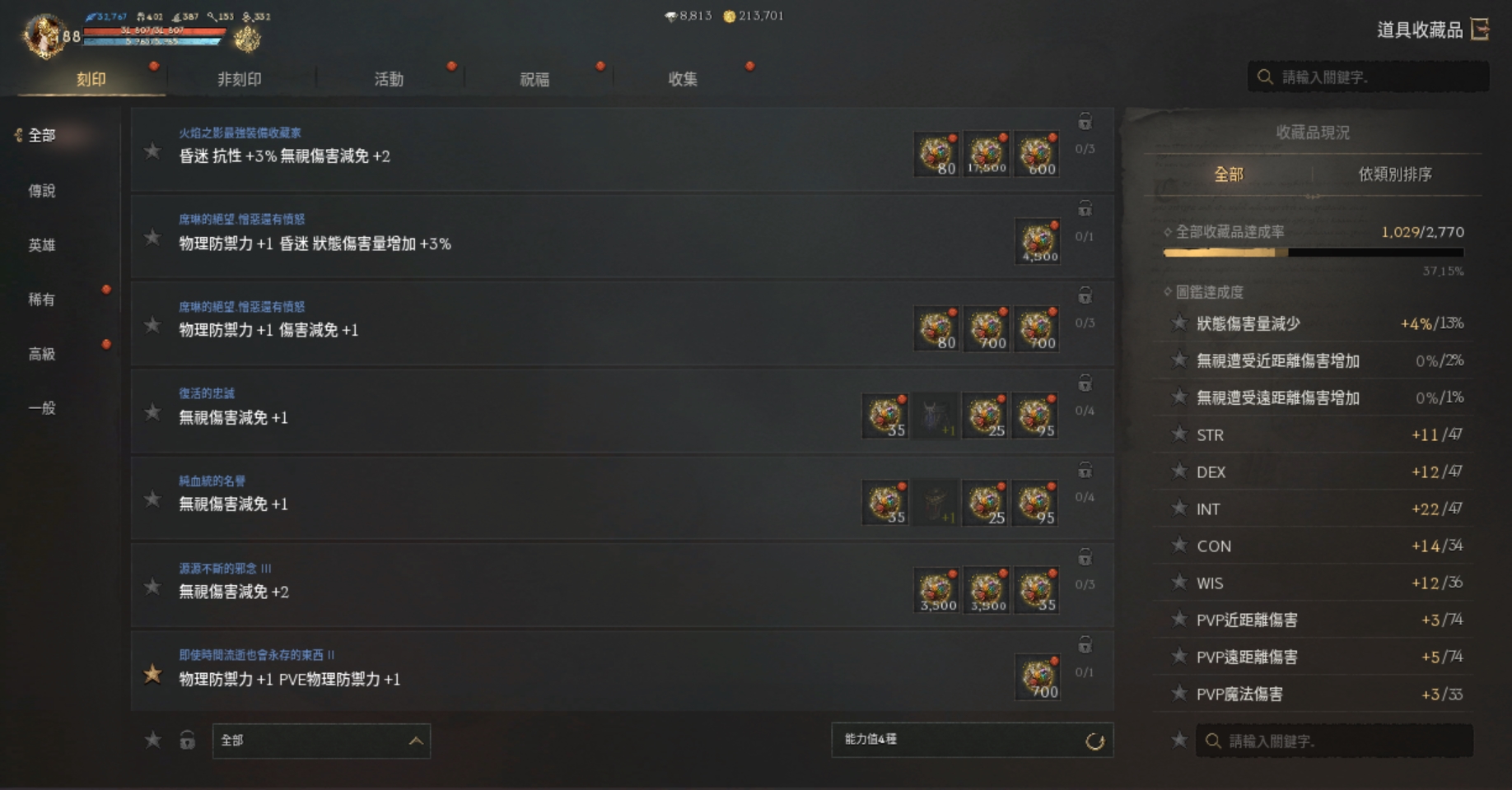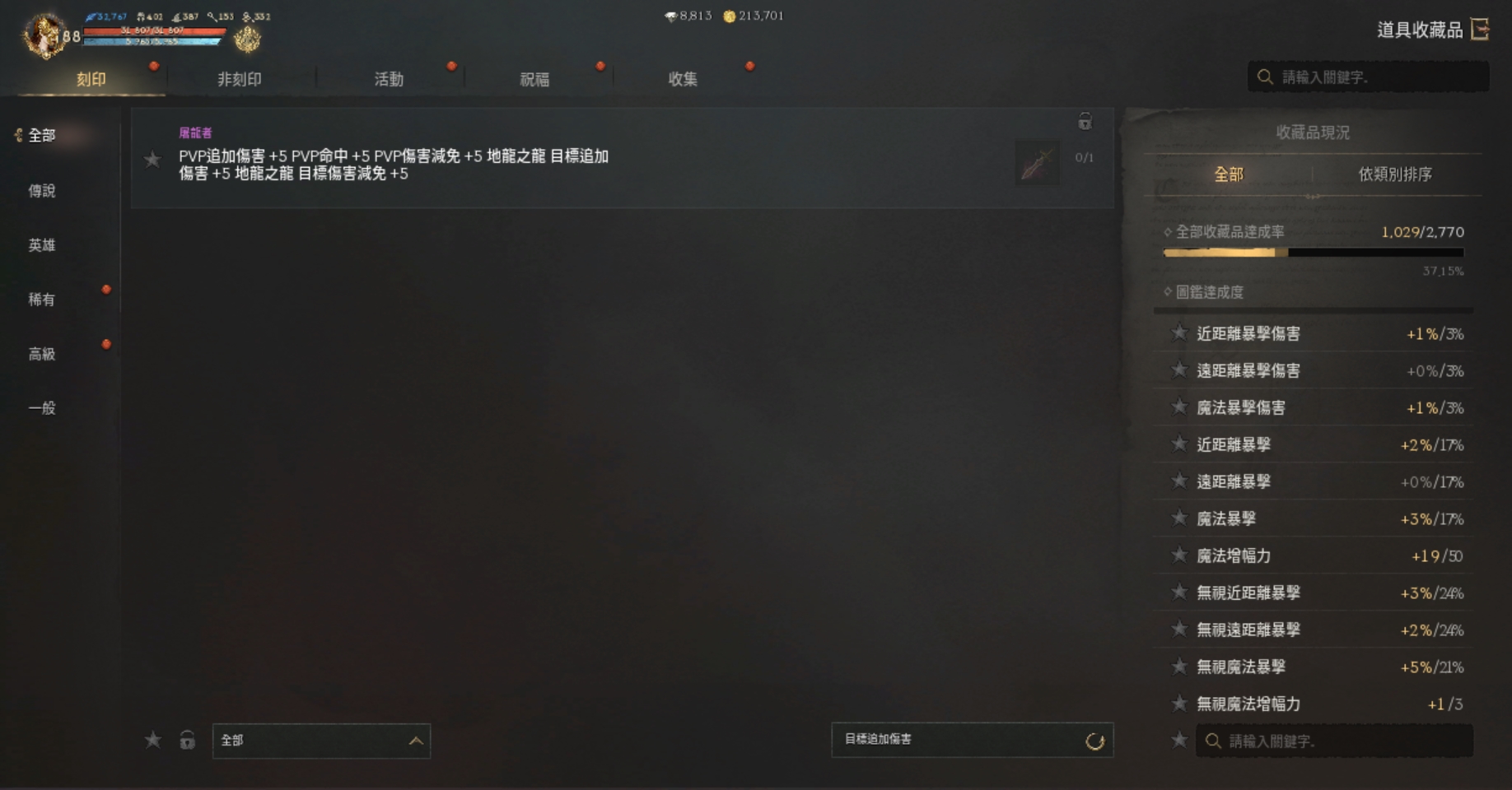 【刻印紅裝】:)+3祝裂痕耳、+8天使仗、+2血戒.+6噩夢守護戒指.+6祝福噩夢勇士戒指.+6冰節頭盔.+5匠人脛甲+5冰節手套