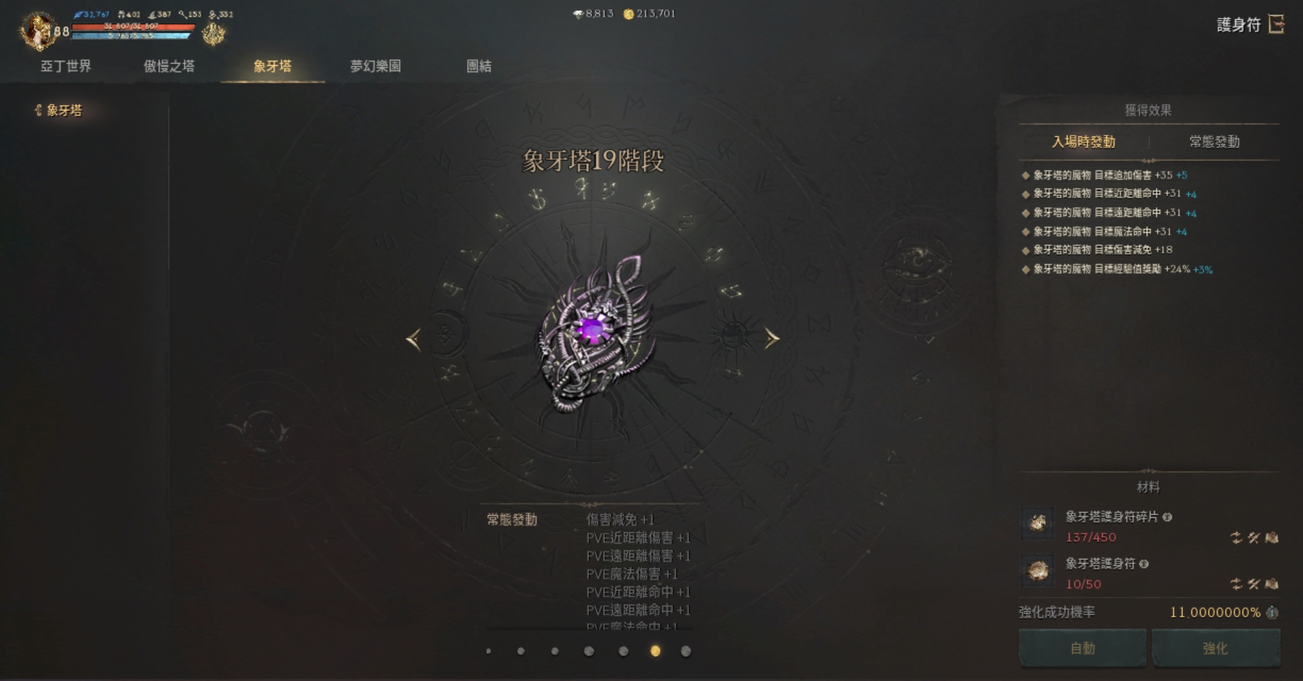 【符石】:+3貫穿符石、+5燦爛的知識符石