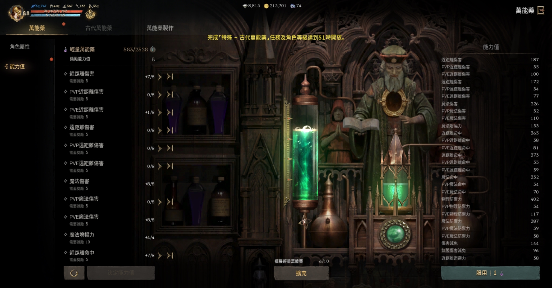 【萬能藥水】: 萬能藥30滿,輕量583/1609 擴充(6/10)