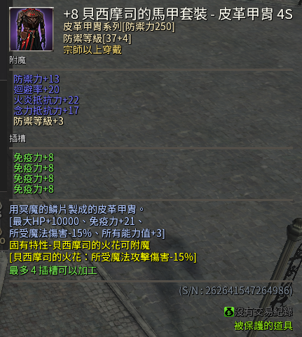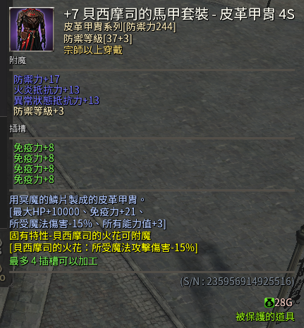 +7 貝西摩斯的馬甲套裝 - 皮革甲冑 4S: $5500 (已售出)