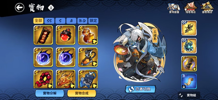活動都有打的話,等活動完成後 碎片夠換ss忍宗 ss專寶