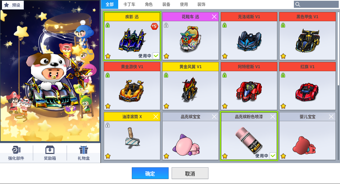 內容:疾影訊 (改S賦能/台服叫巴爾札特)+ 5紅框V1(克洛諾斯V1+黑色甲蟲V+黃金遊俠V1+阿提密斯V1+紅旗V1) +黃金爆刃 V1 (車輛都頂改)