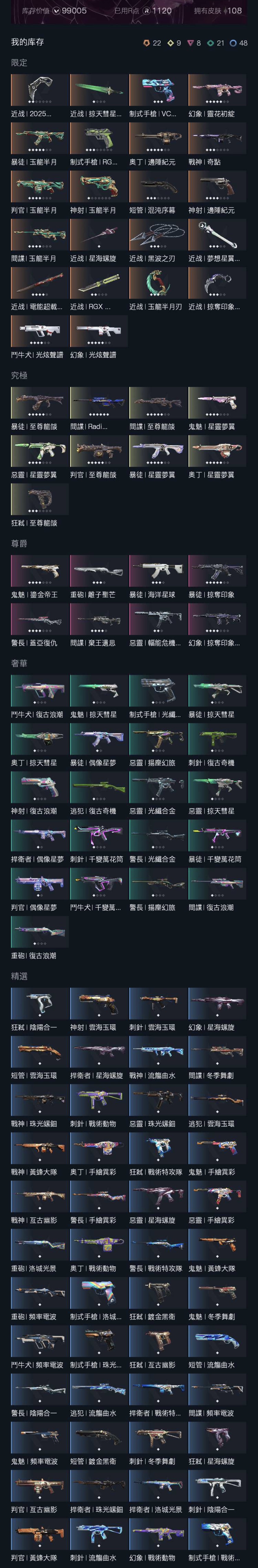 帳號 【金牌、30槍、7刀】 星靈套、玉龍套、VCT爪刀、黑波之刃、掠奪爪刀、至尊龍燄暴徒、靈花幻象、邊陲神射