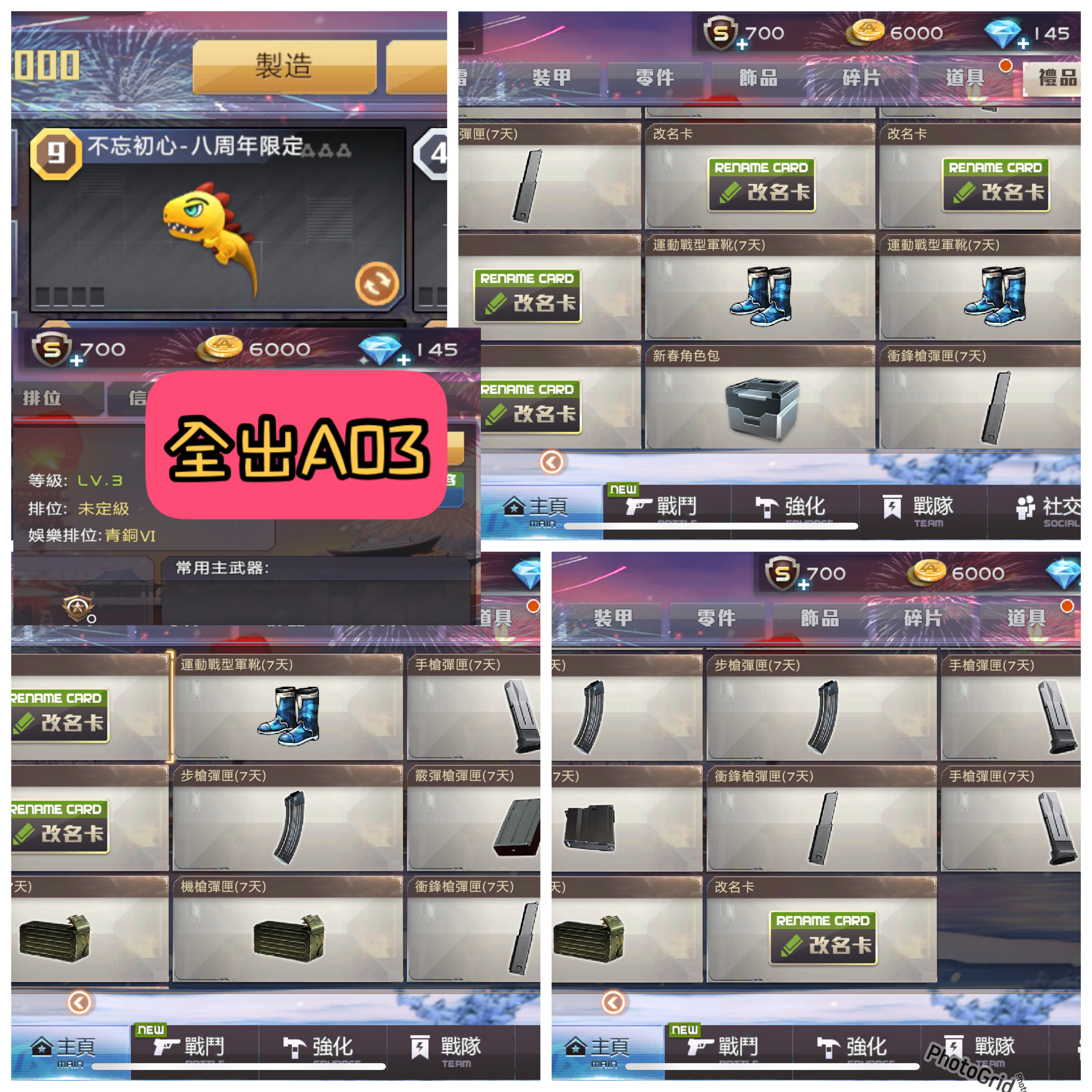 帳號 【初始號】 全出A03 七改卡 多彈匣 雙女包 如圖 可自行儲值填單改密碼