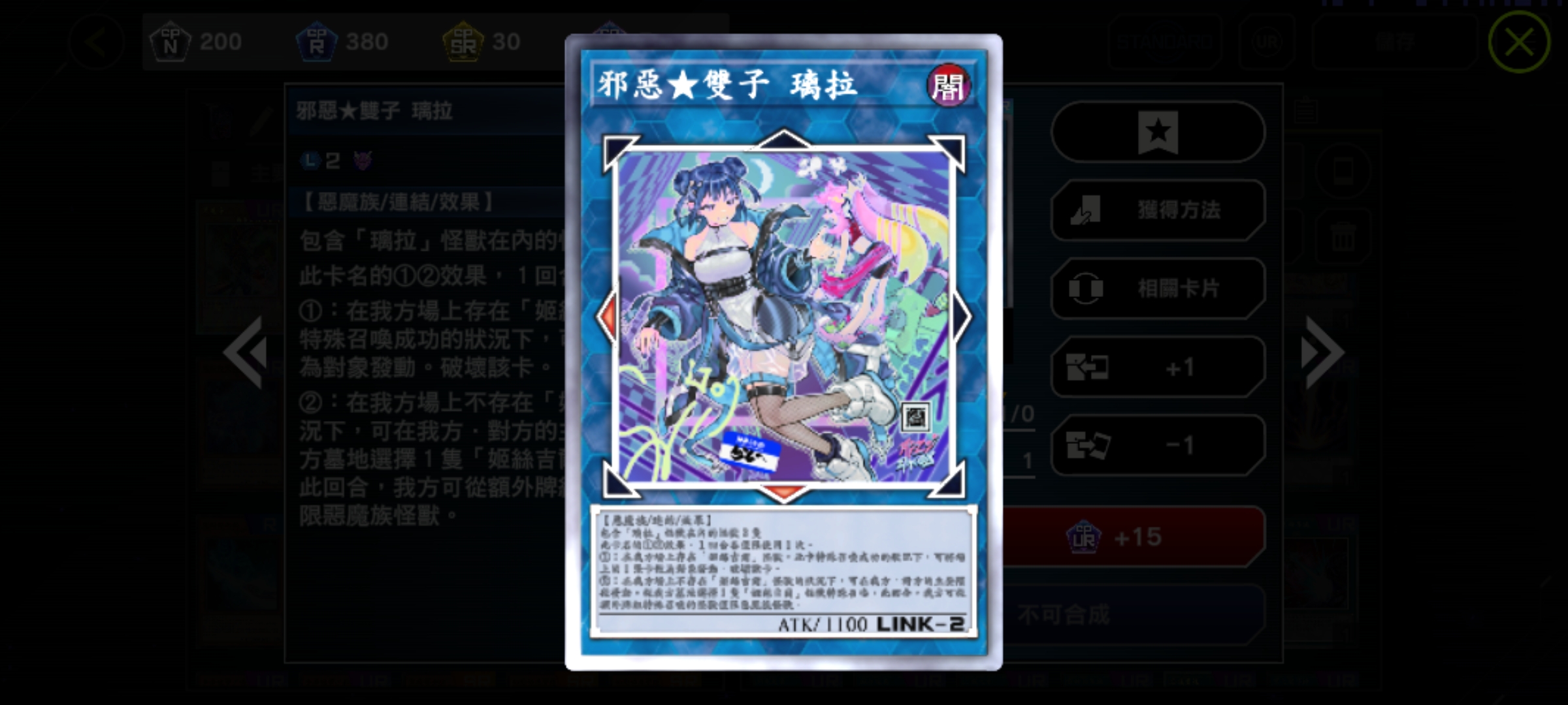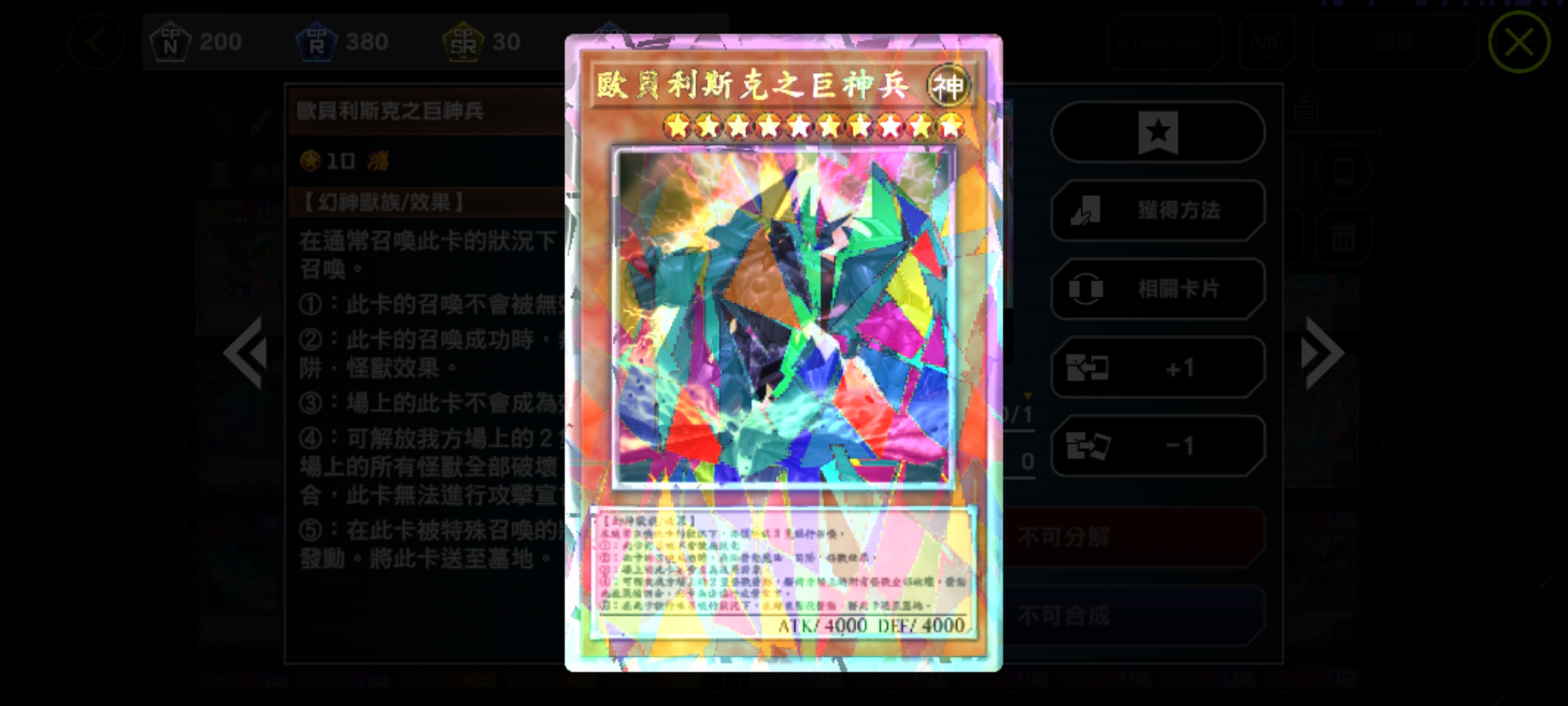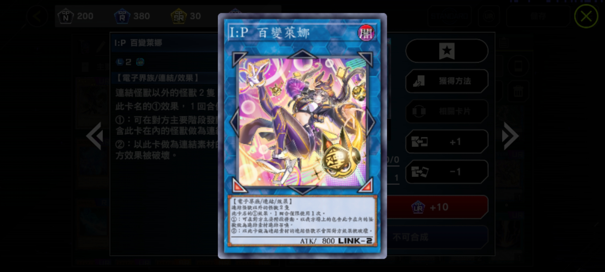 怪獸卡:灰流麗(手坑,異圖版!亮面兩張!)、效果分隔士(手坑)、幽鬼兔(手坑)、小丑與鎖鳥(手坑)、原始生命體-尼比魯(手坑)、增值的C(手坑)、黑魔導(開服限定!雙異圖版!)、歐貝利斯克的巨神兵(活動限定!異圖版!)、I:P百變萊娜(L2連結,異圖版!)、S:P小夜騎士(異圖版!)、