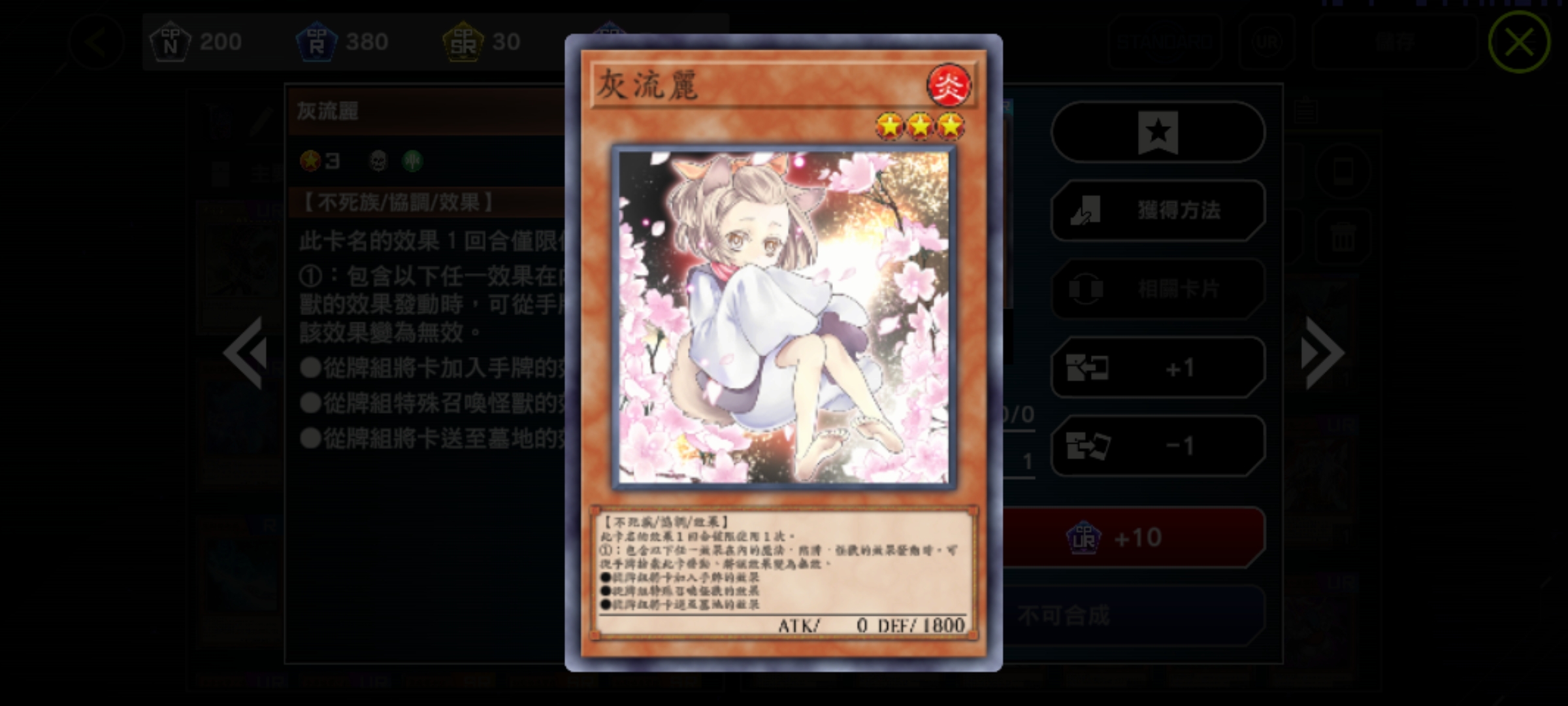 注目卡片(依序為怪獸卡、魔法卡、陷阱卡):