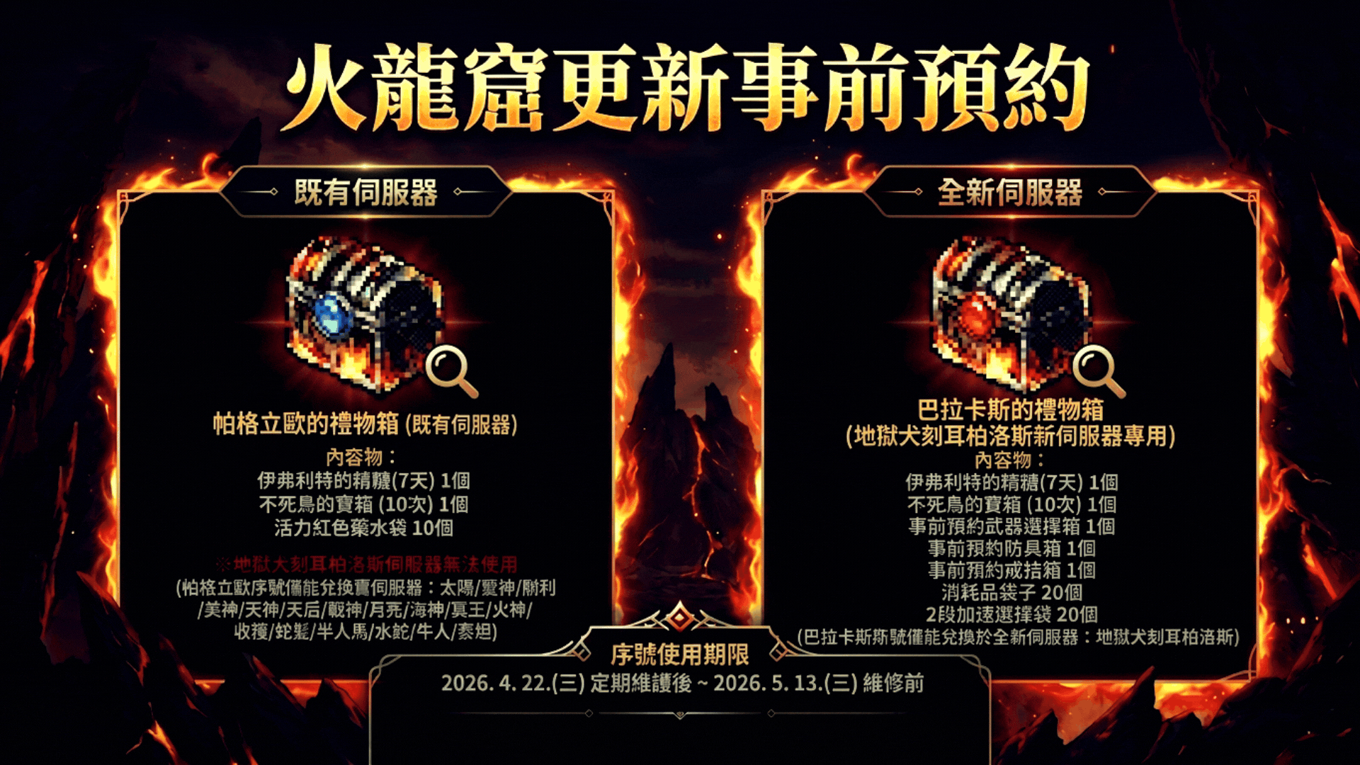 ③火龍窟事前預約序號於4/22遊戲維修後開放兌換