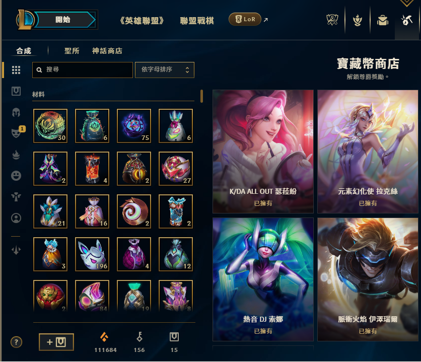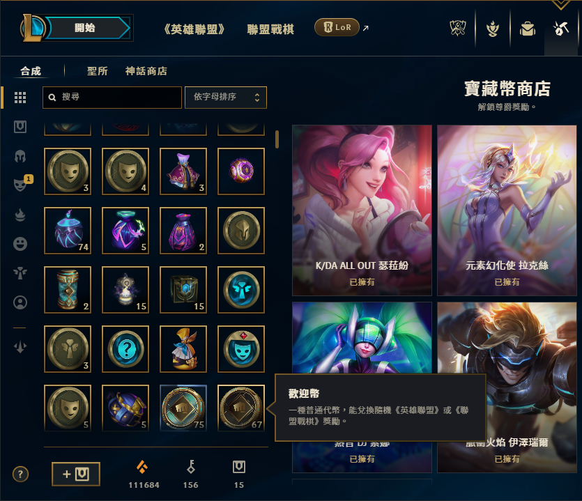 帳號內附大量造型碎片/福袋/晶球/寶箱/寶藏幣/歡迎幣