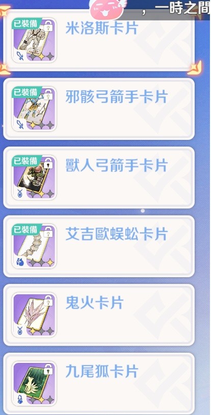 米洛斯卡片1、斜骸弓箭手1、獸人弓箭手1、蜈蚣卡、鬼火、九尾狐