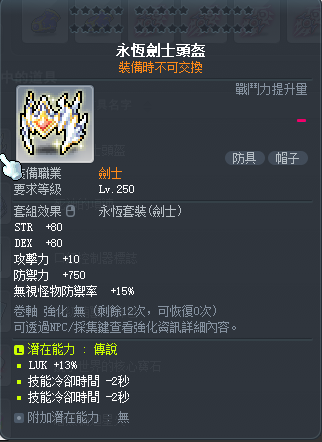 道具 【永恆劍士頭盔】 -4CD永恆劍士頭盔 / 250劍士帽 / 小資用 / 打王用 / 劍士 劍豪蓮