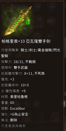 道具 帕格里奧+10亞瓦隆雙手劍(閃光聖騎 騎士)