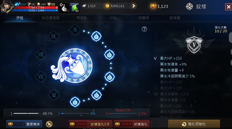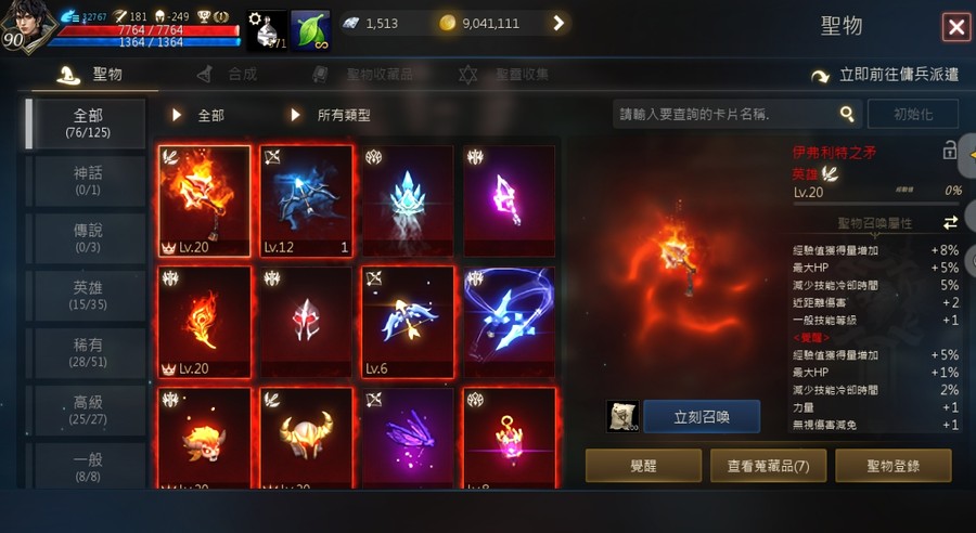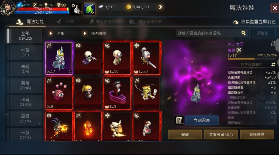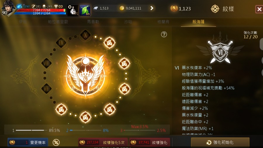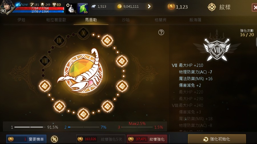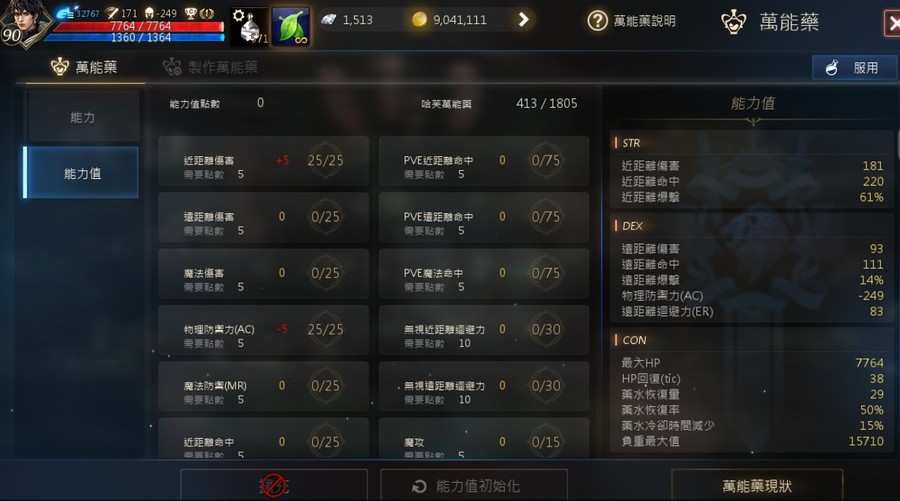【等級】90.4級上升中 攻181、命209、AC-250 MR 360