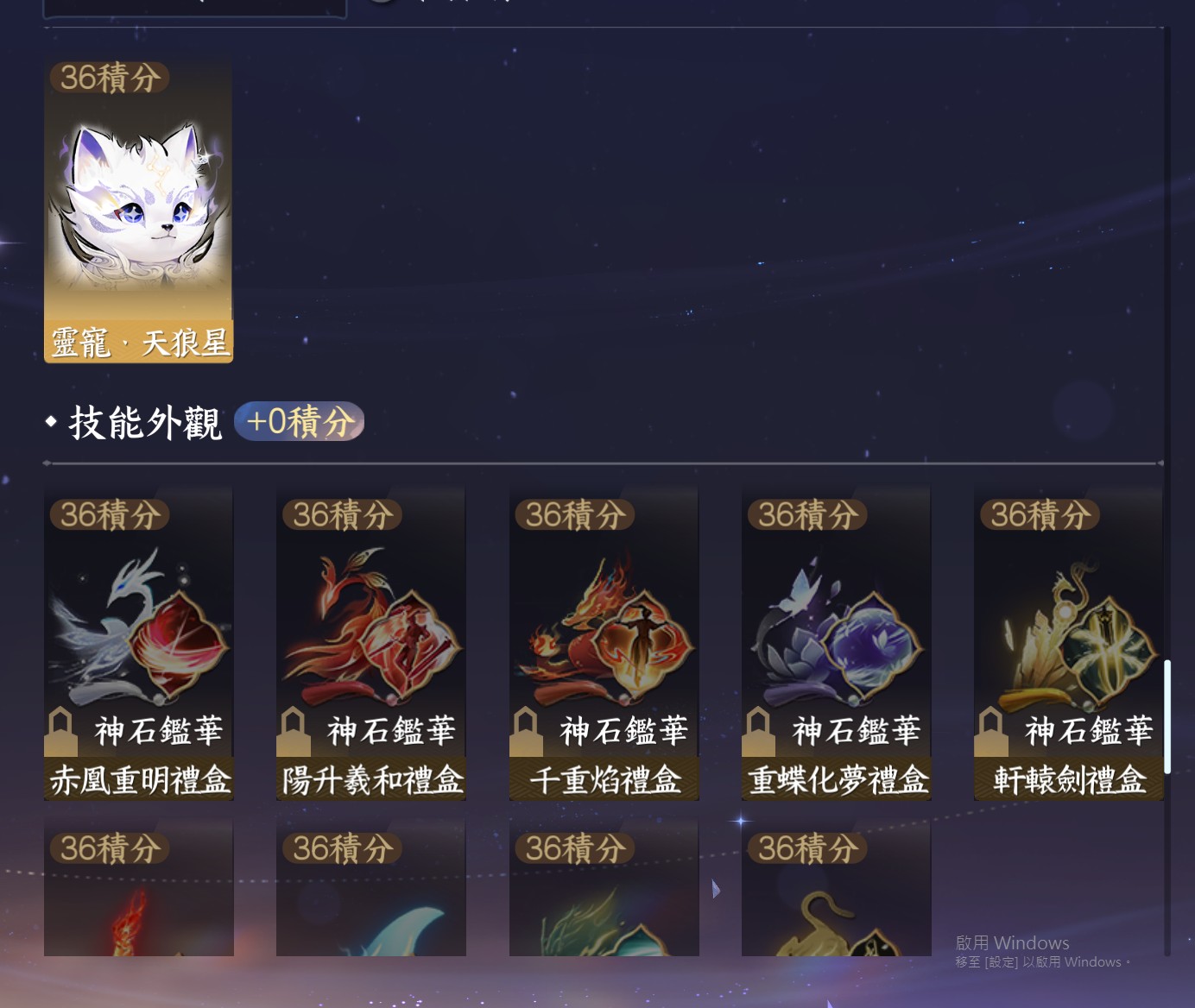 4已用天賞 (寵物天狼星/白髮齊雪/水武/禦劍輕功