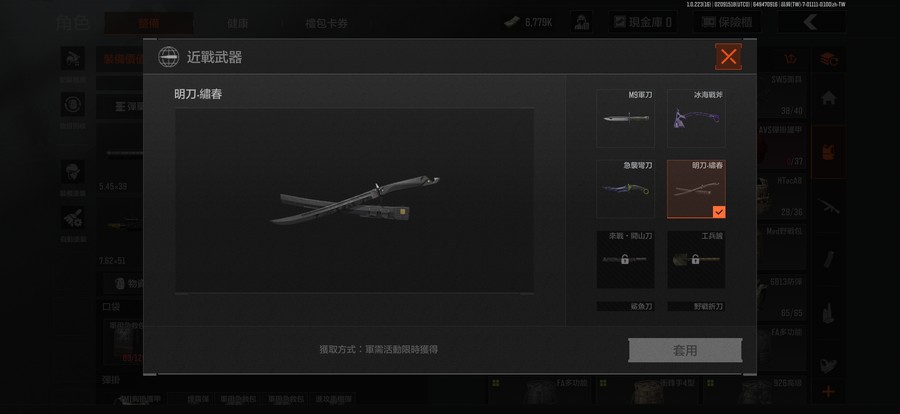 【30等】退遊自售 號18M 刀皮3把 連動槍皮3把 金皮1套 價可議
