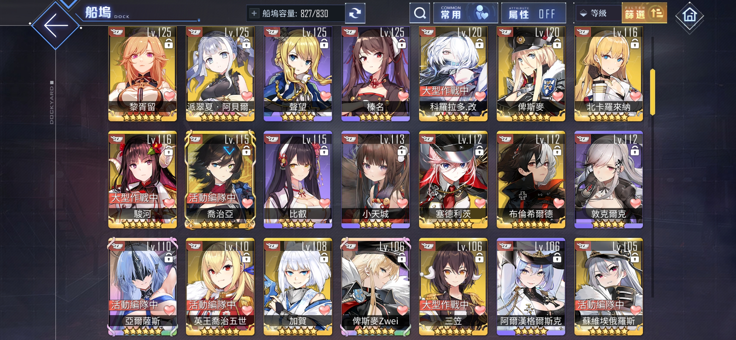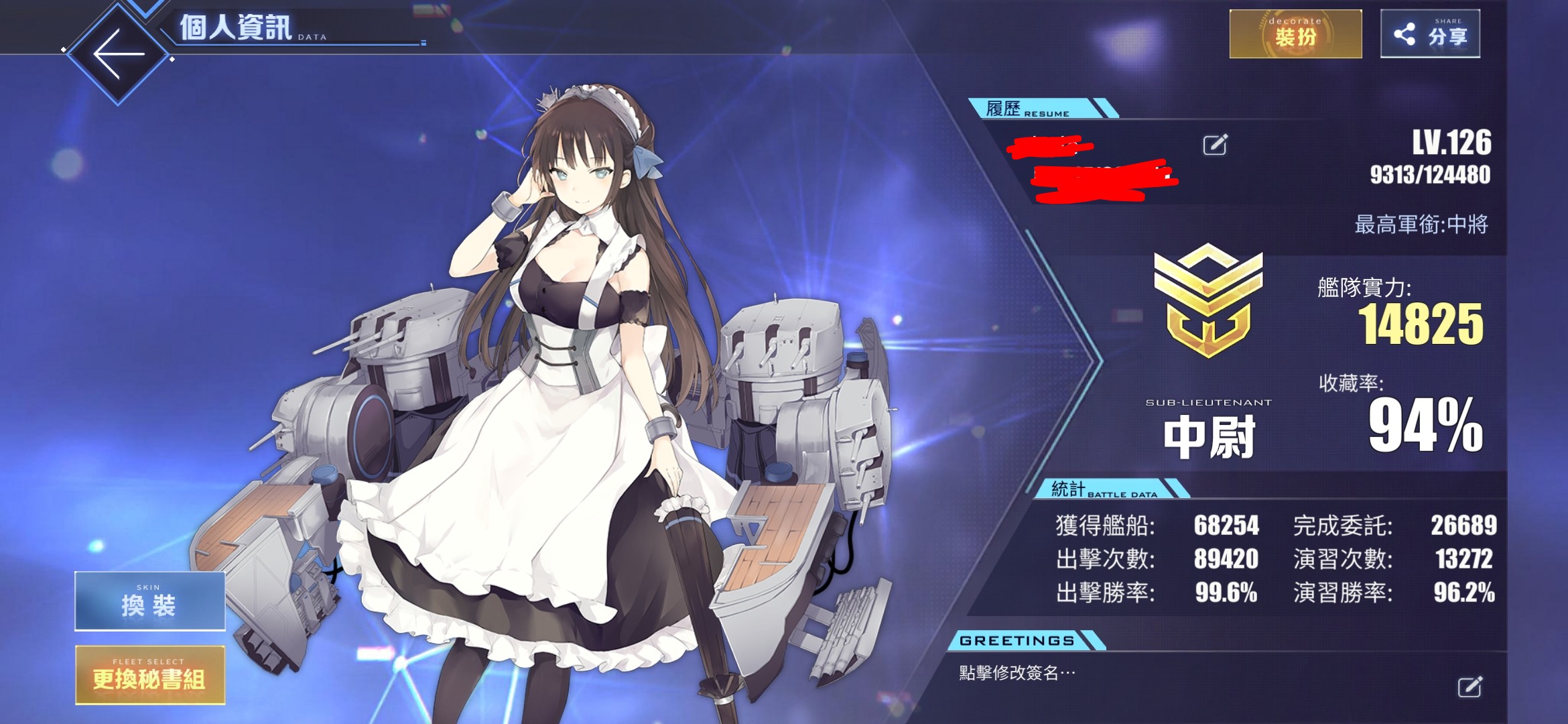 【126等】 瓜服,收藏率94%,開服老帳號,10級大艦隊會長艦隊司令,多連動角色,超級多金裝