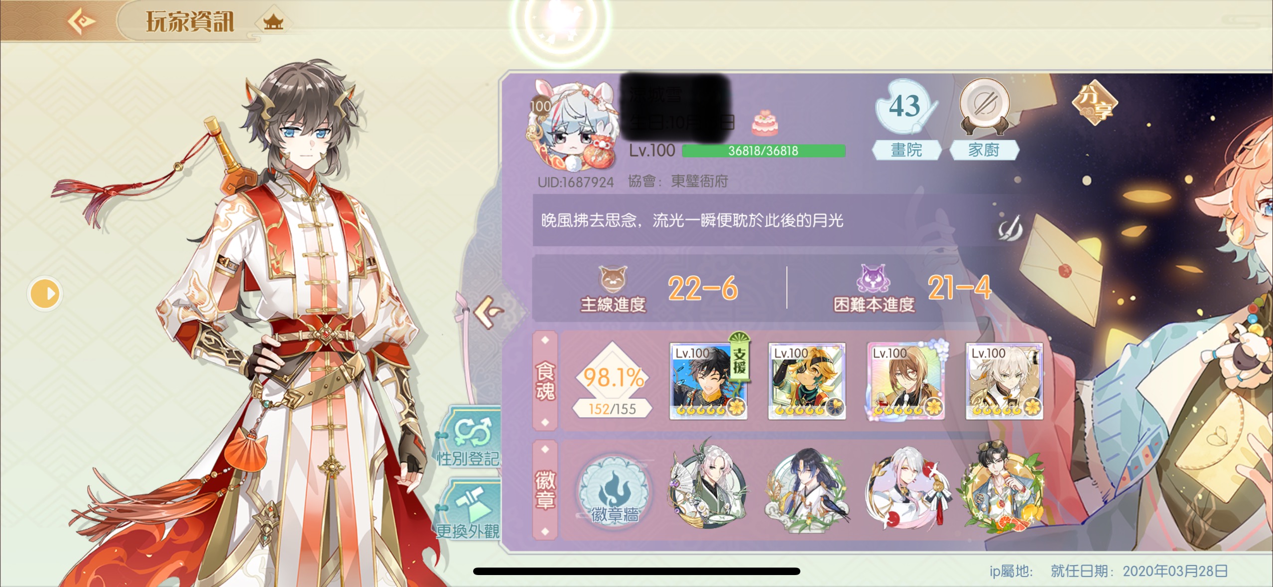 【100等】 滿等,練度高,年限全滿花,多套時裝,時裝卷還有3100多