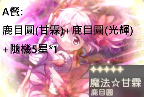 | A | 鹿目圓(甘霖)+隨機五星 | 60 |