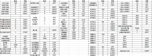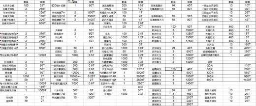 道具 19服嵩山 精十裝升青龍裝550t 7彩天命綢25t開光天悟卷4件950