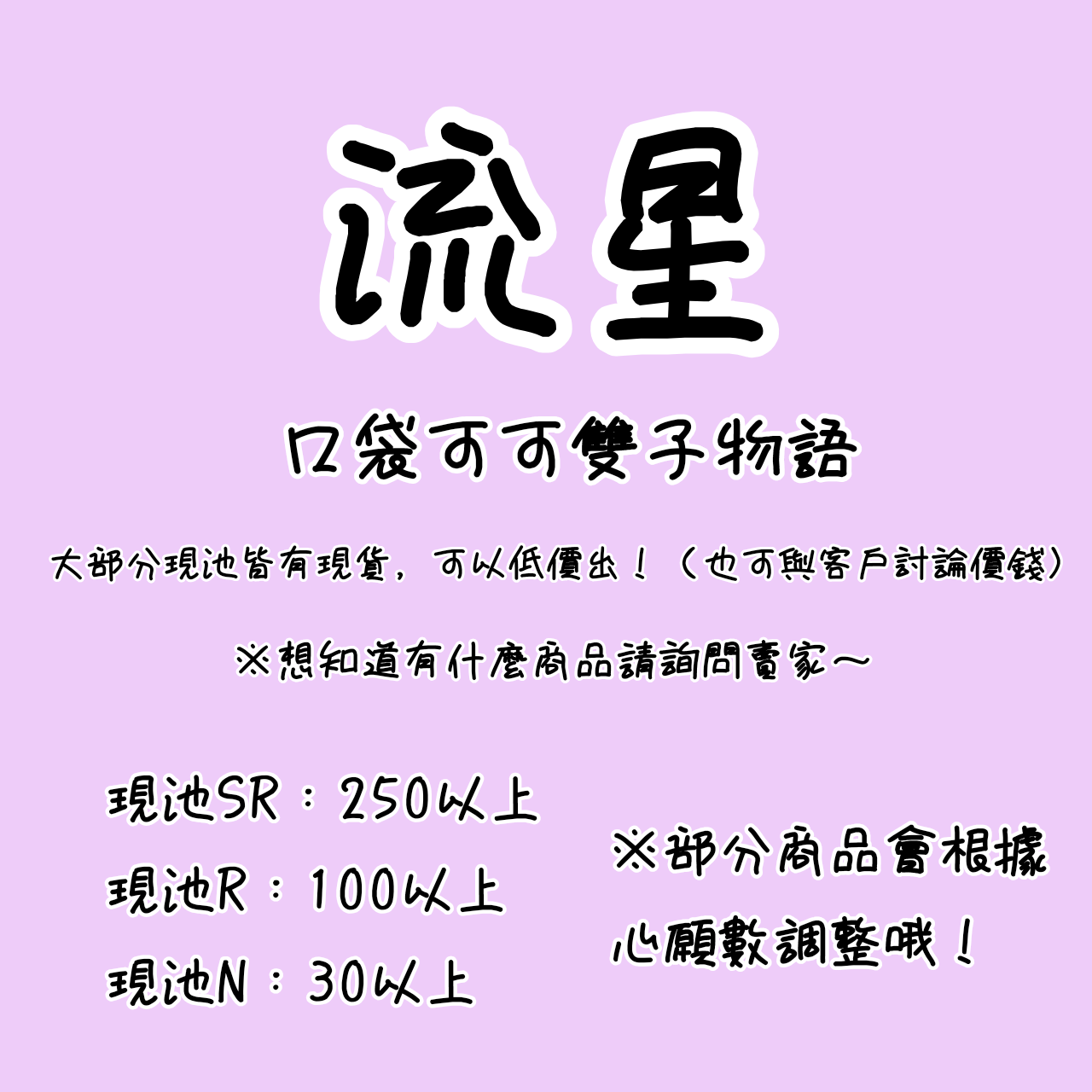 禮包 「流星商城」口袋可可雙子物語 商品可低價賣物!最低10元!(更新至白蝙蝠池)