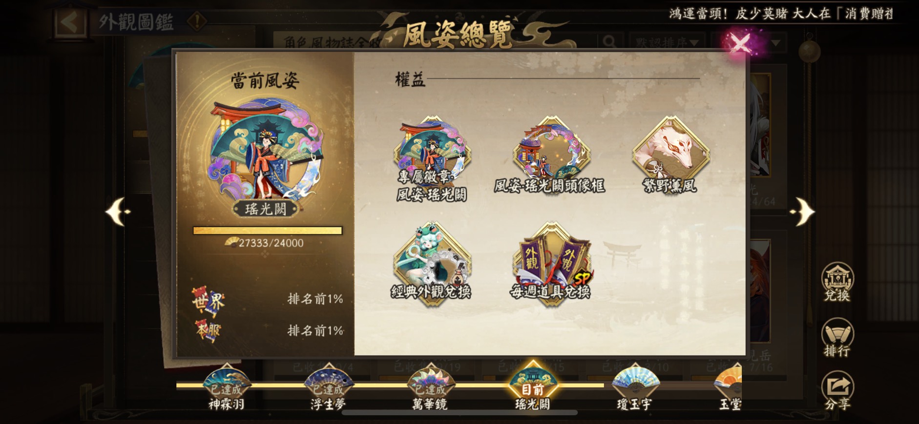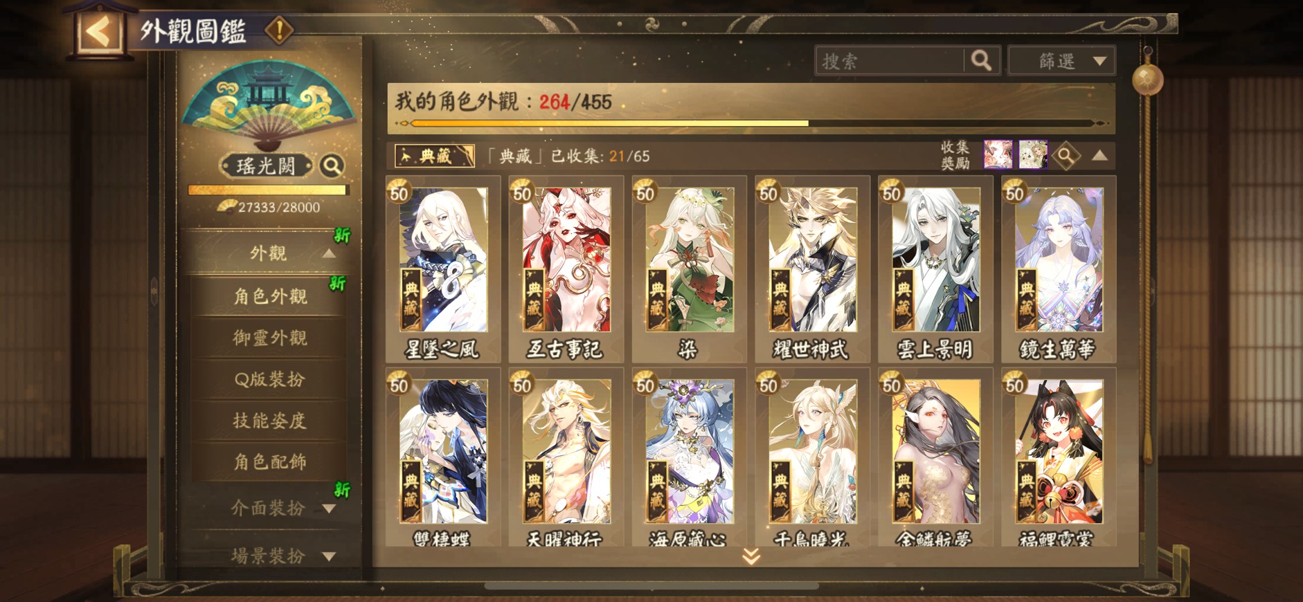3. 花合戰皮膚:2021 - 2023 年全收集、2020 年 11/12 個、2024 年 6/12 個