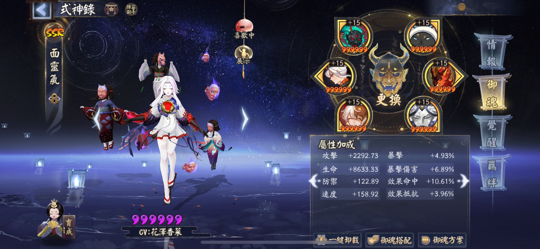 二號位主屬性速度的滿速 4 個,最高速 16.81