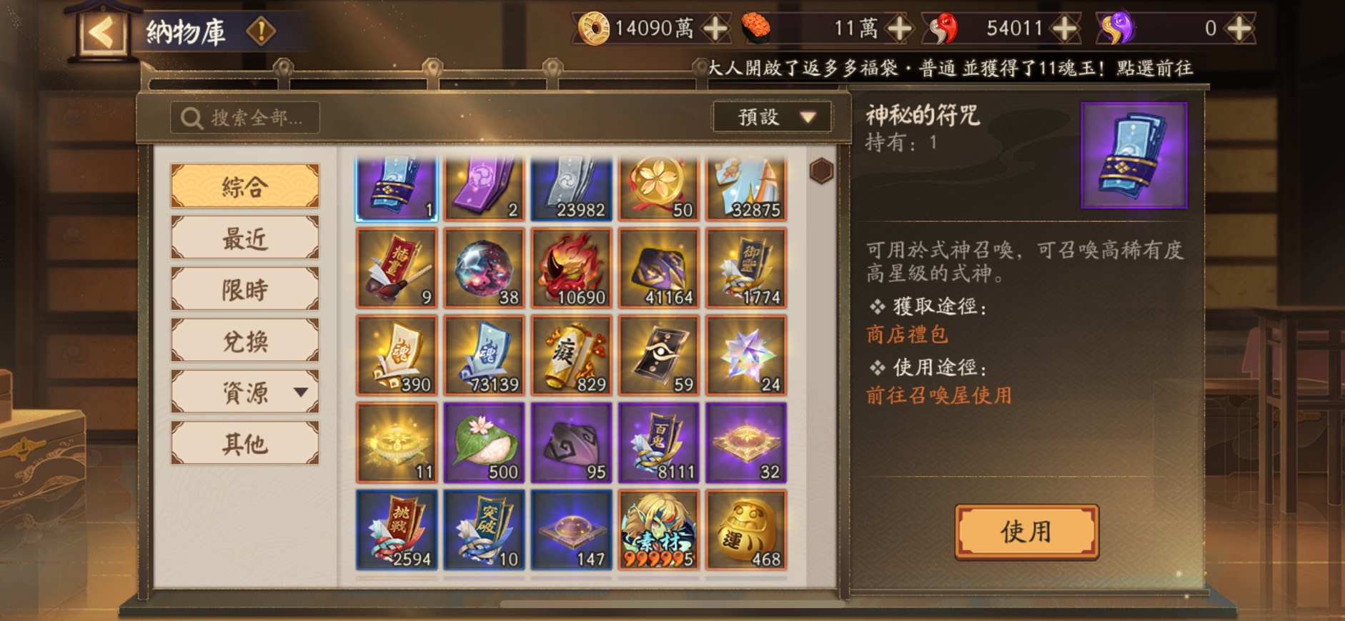 3. 御魂換不完:四萬金蛇皮、一萬逢魔之魂、三萬繪本
